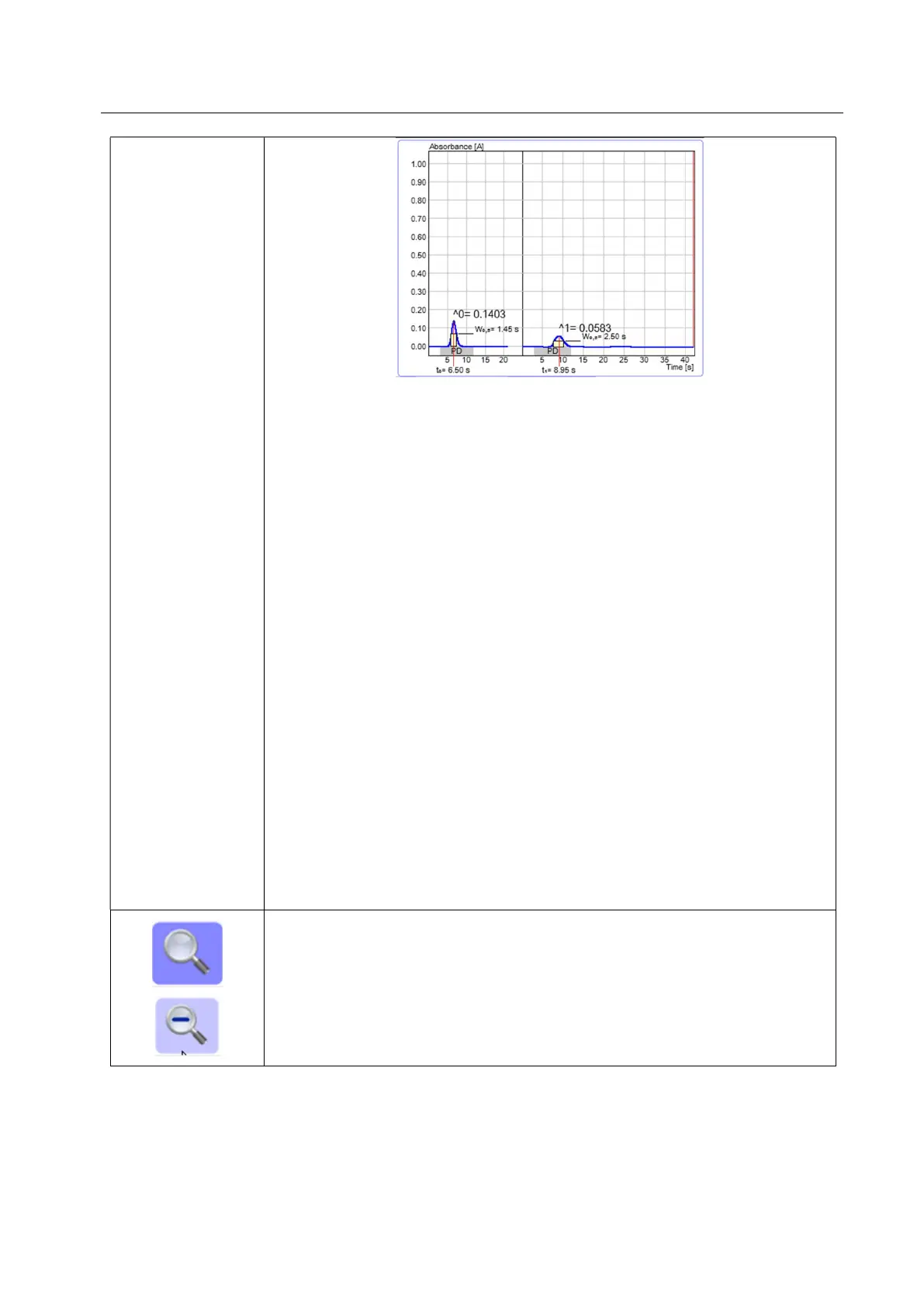 Touch the magnification icon to zoom-in on the height of the peak used for