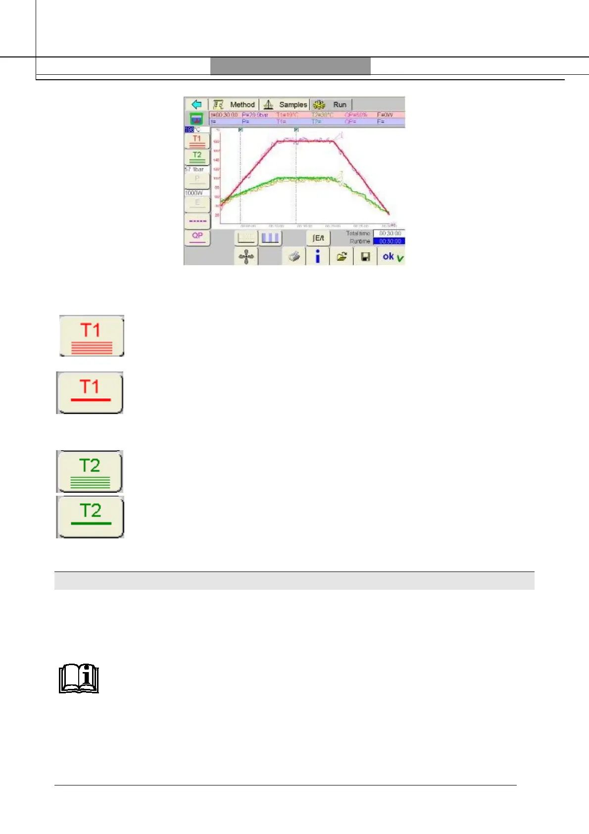 Pressing “T1” in the run page, the following graph option will be displayed: