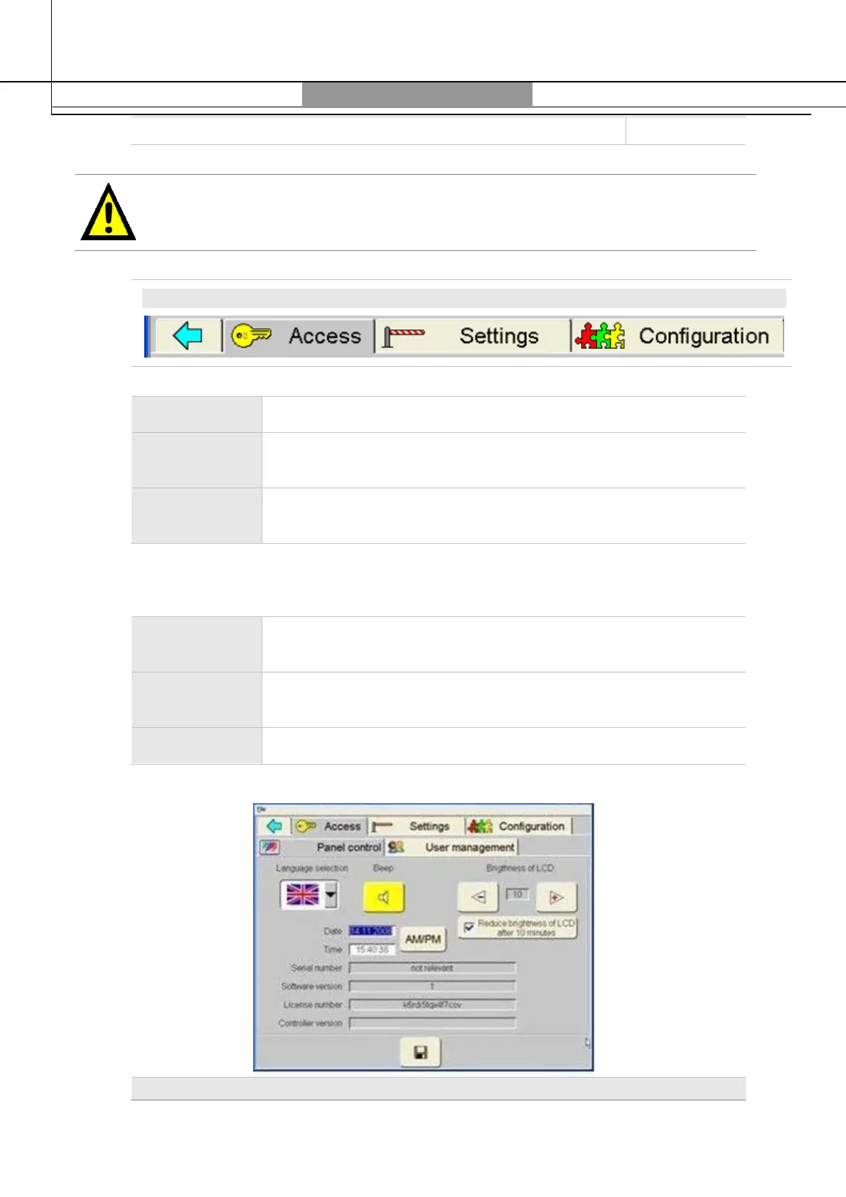 Access To make settings for the terminal and to administer users.