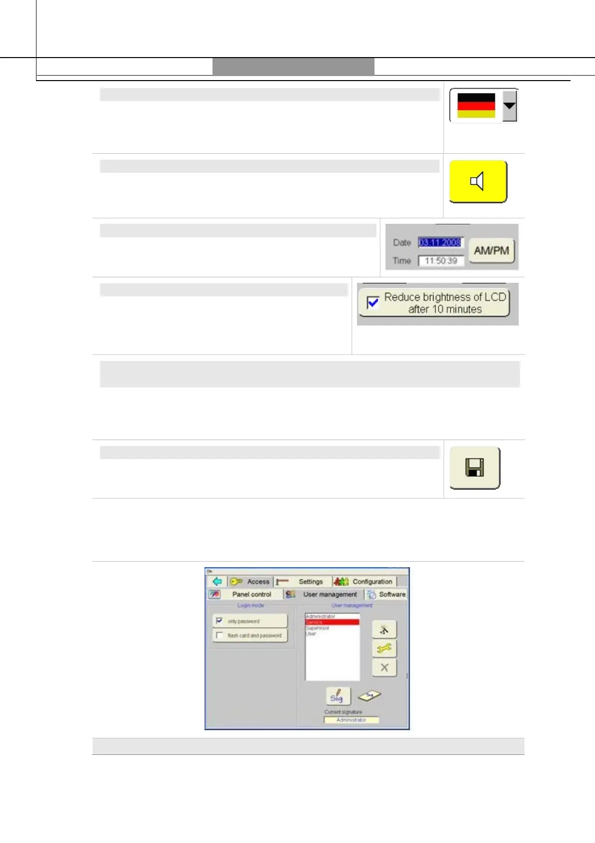 This section is used to administer the access authorizations for users.