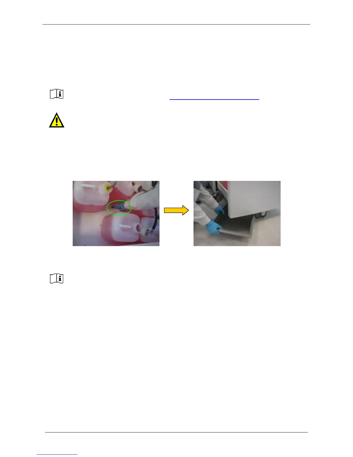 the figure below, put a container under the unit and unload the residual reagent.