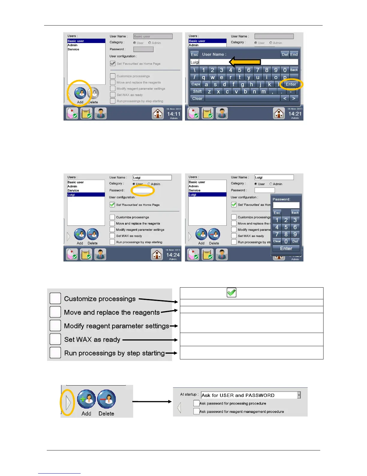 USER PASSWORD: click on the password box, a num-pad appears as shown below, enter the