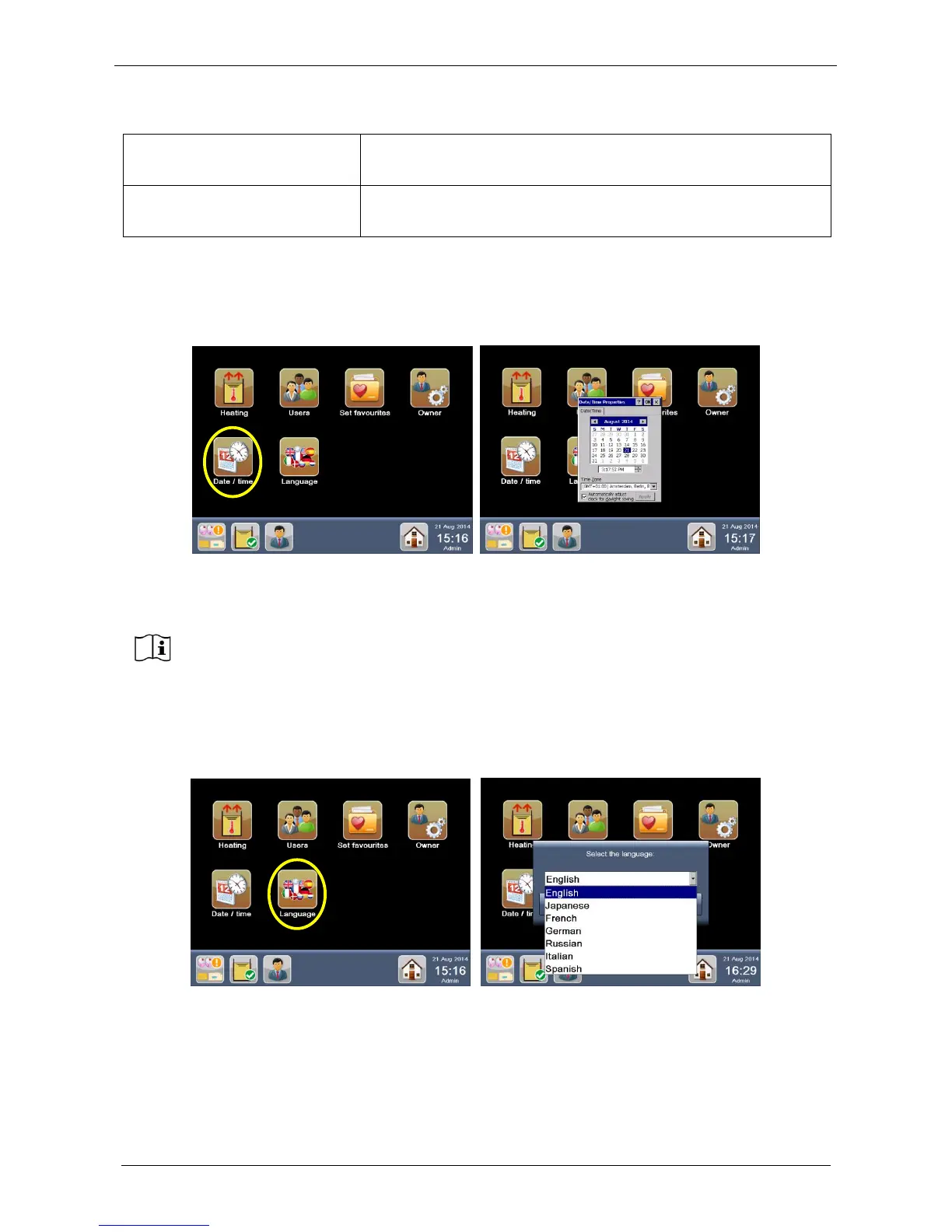 From the HOME PAGE, go into the “Settings” screen and select “Date/time” (see figure below).