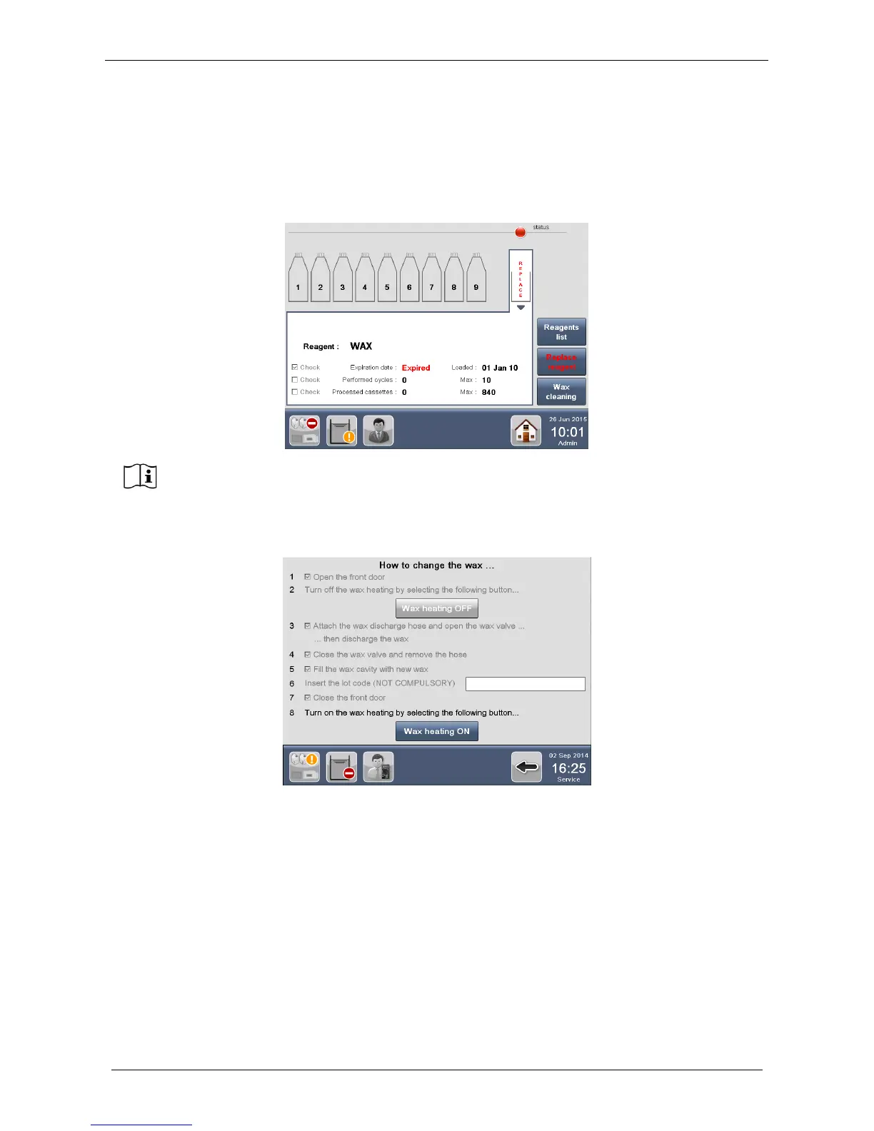 Log in as Administrator to switch on the Wax heating power and reset wax loading date.