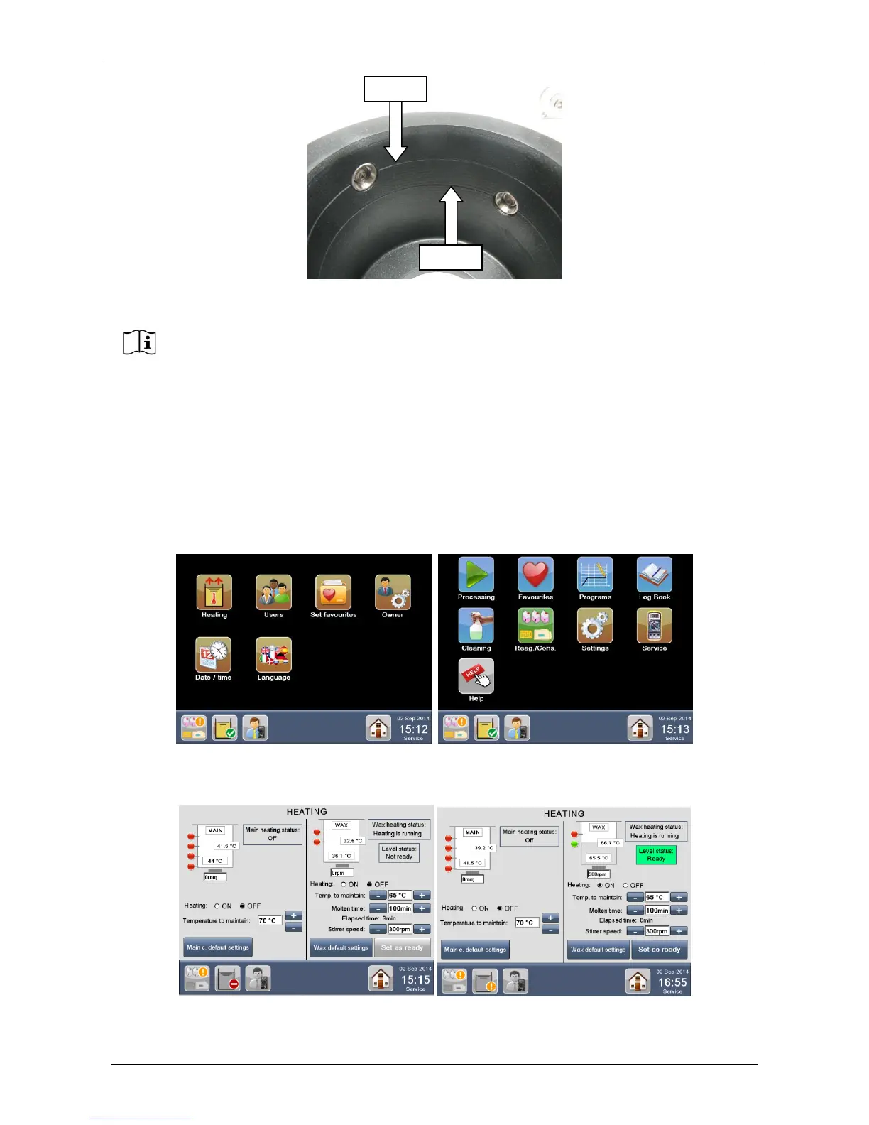 status icon becomes yellow. Check the wax status (fully molten) and press “Set as ready” button.