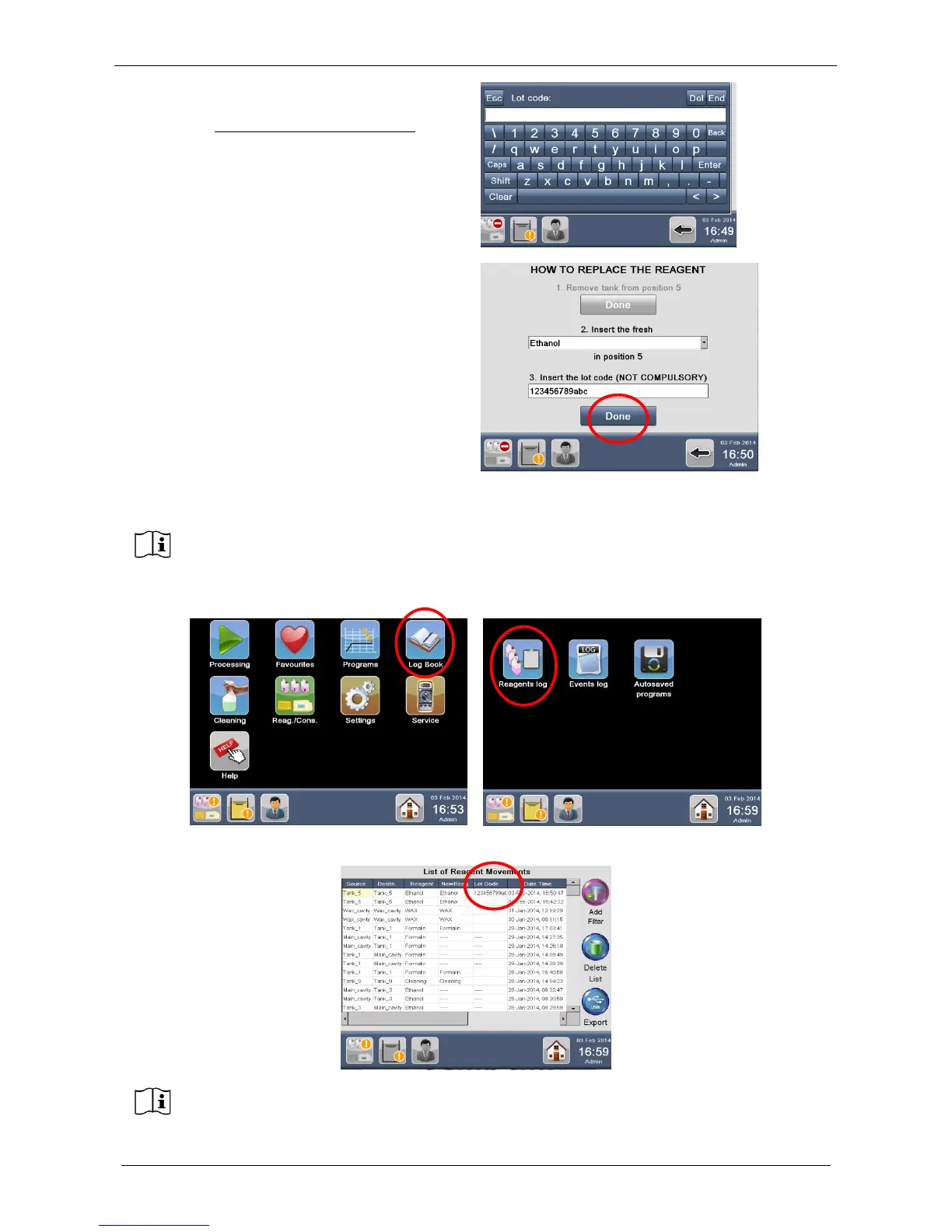 The Lot Code is saved in the Reagents Log under “Log Book” icon.