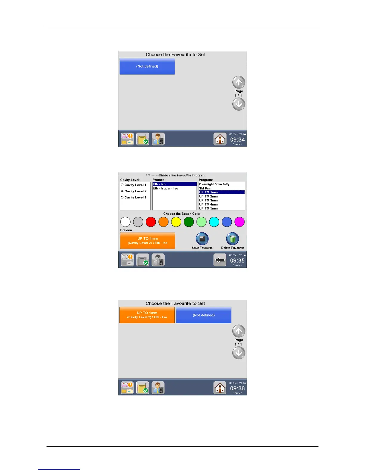 3. Select the CAVITY LEVEL, the PROTOCOL, the PROGRAM and the BUTTON COLOR to change