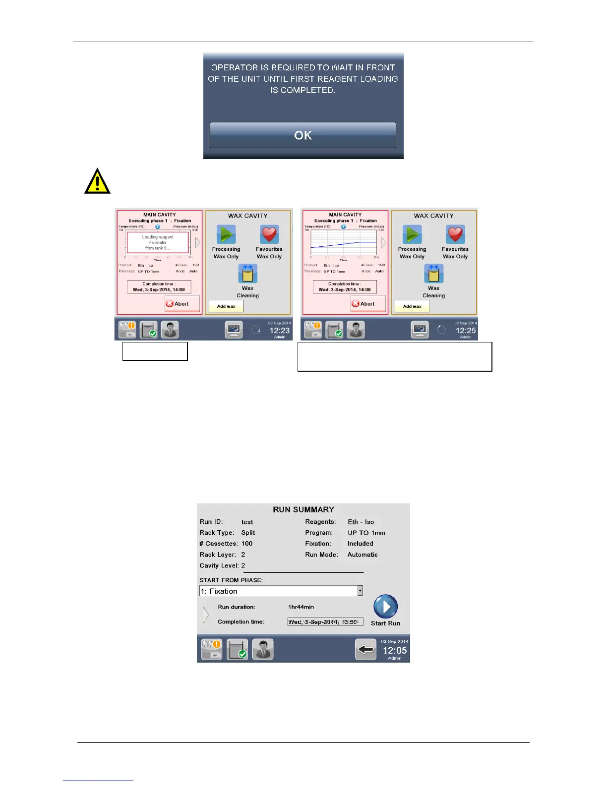 the process, like RUN DURATION and the COMPLETION TIME. Press Start run to run the cycle NOW.