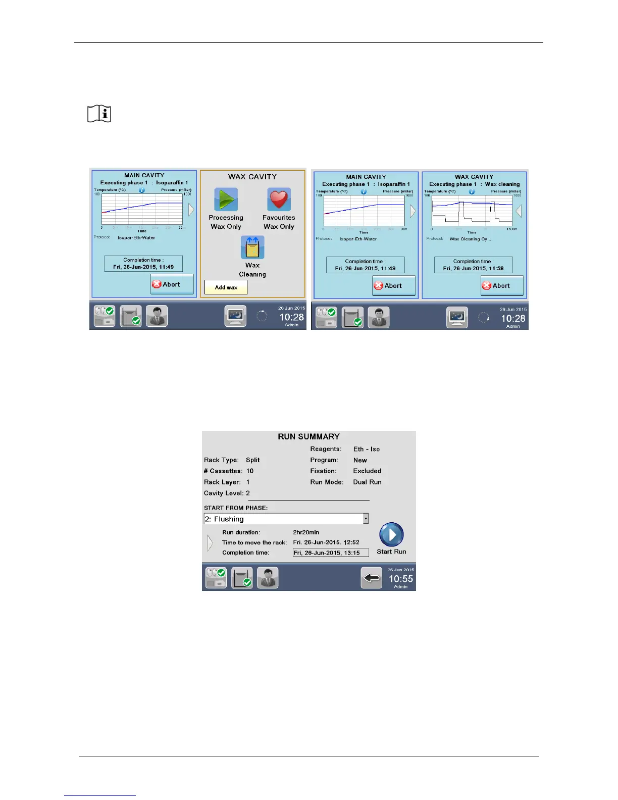 If DUAL RUN run mode is selected, the following RUN SUMMARY screen appears, displaying process