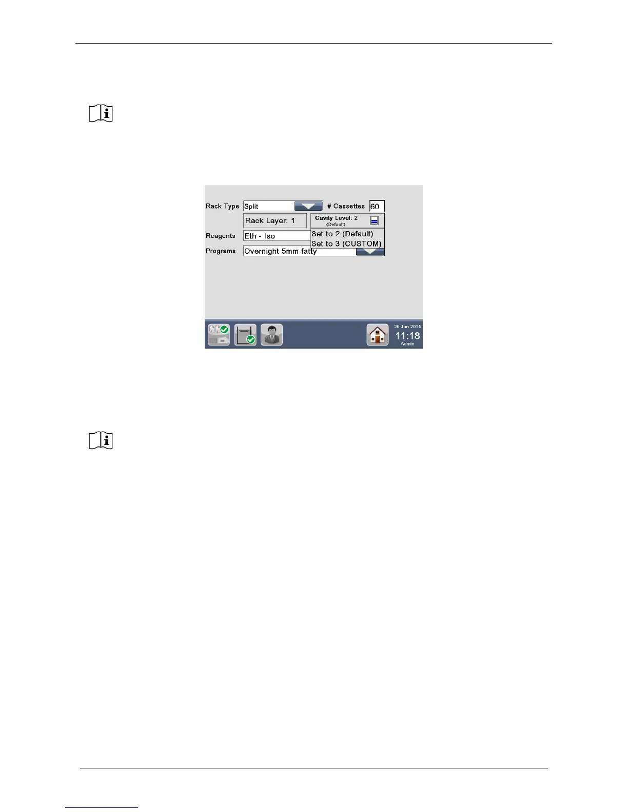 “Rack Layer: 1” – “Cavity Level: 2” if from 1 to 70 cassettes are inserted