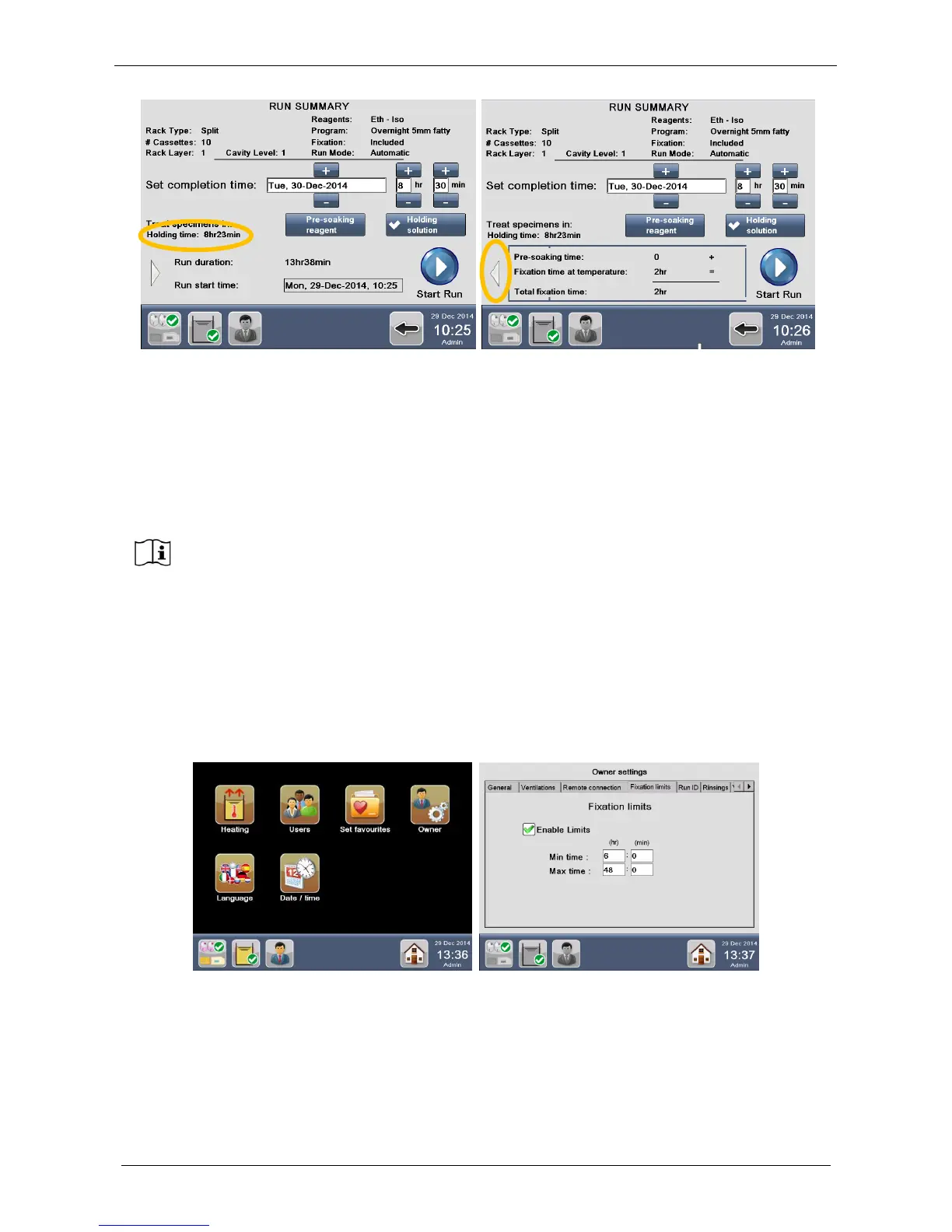processing as set by user. The “Holding time” is indicated by the figure above left, yellow circle.