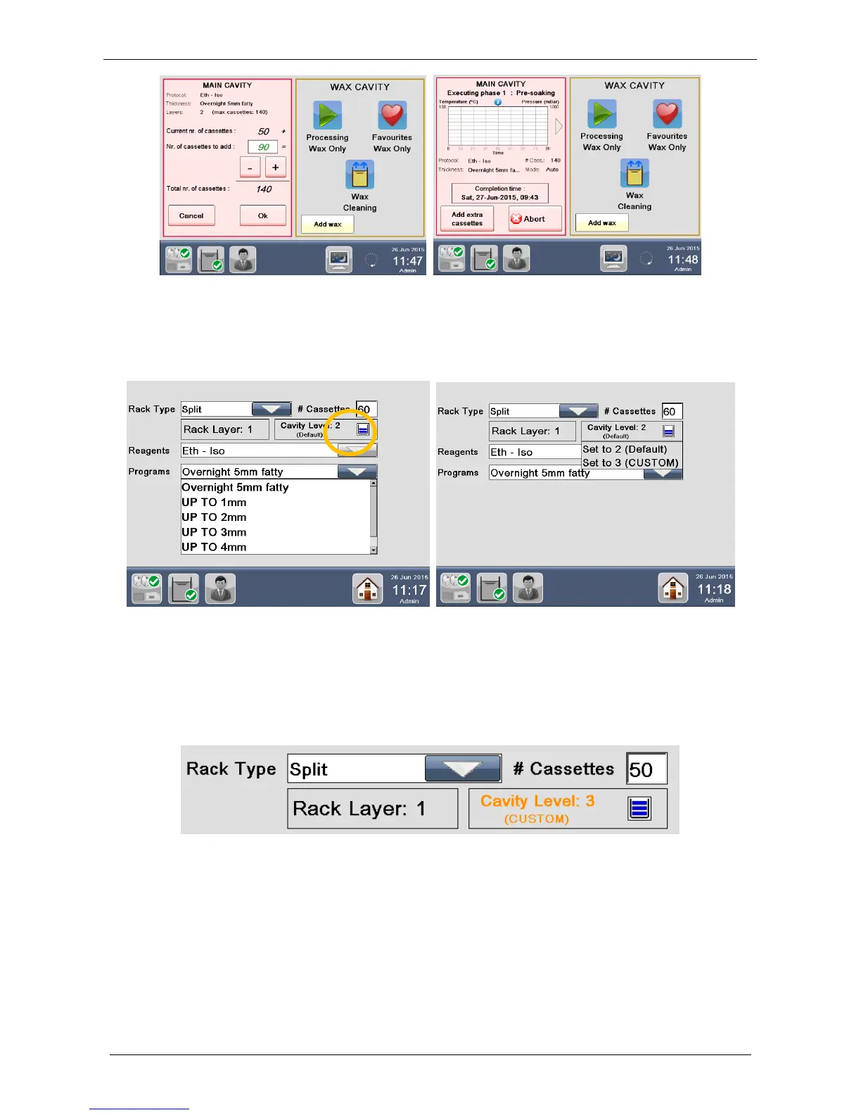 At the start of a program it is possible to force an upper cavity level, if more cassettes are required to be
