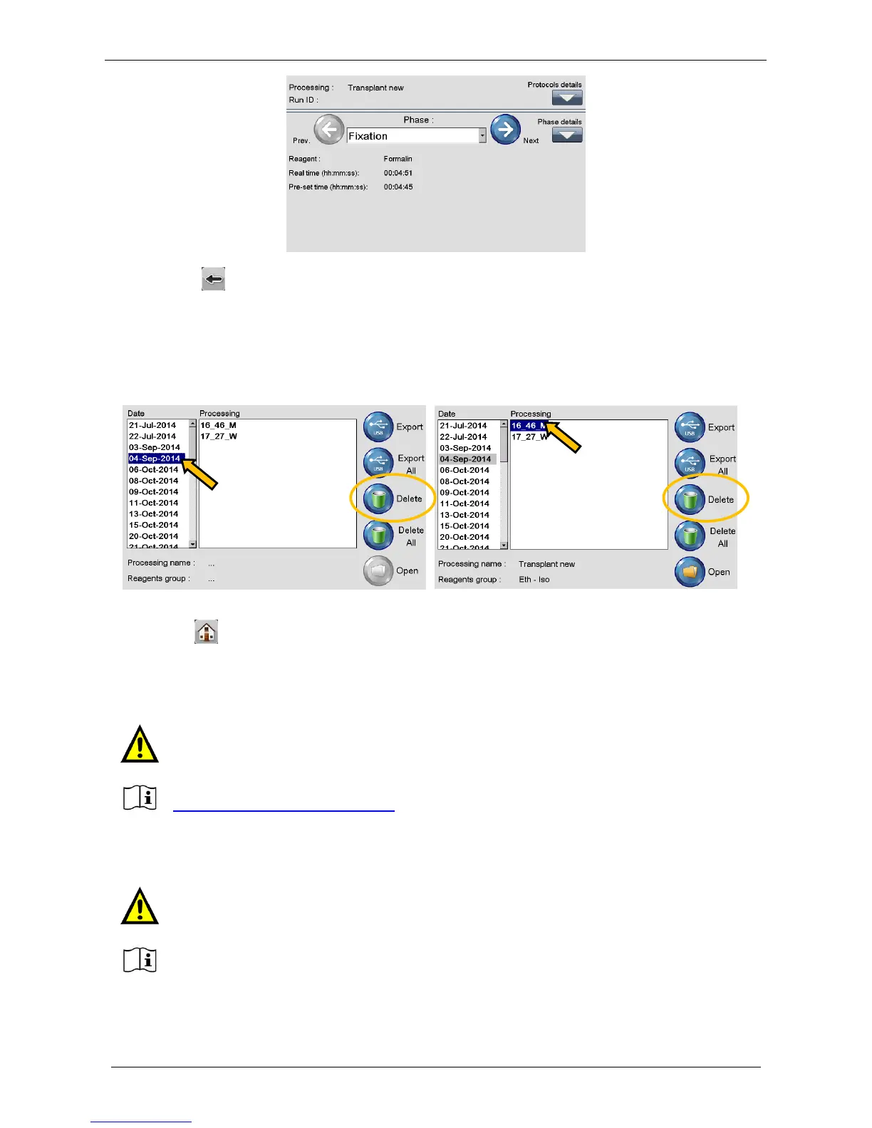 Select a Date and press Delete to cancel all processes saved that day (left figure).