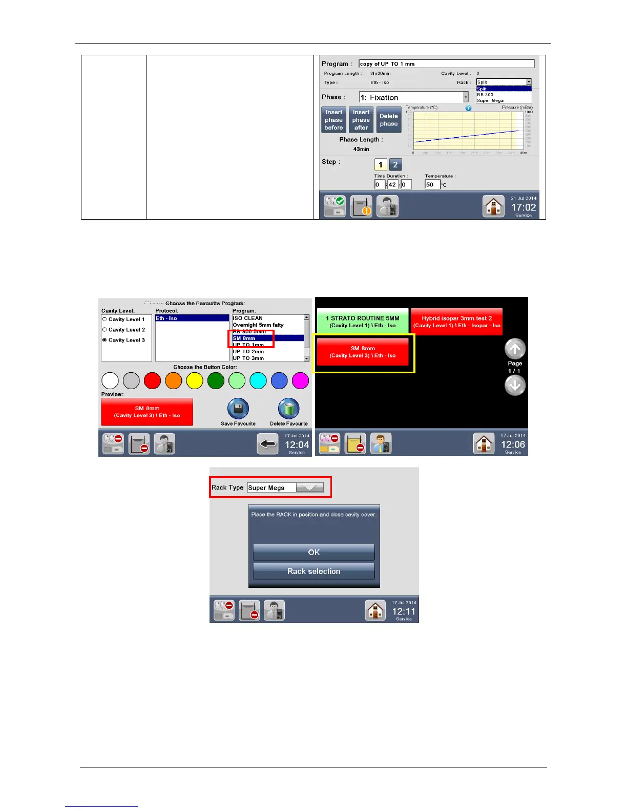 If a change of rack is necessary, it means that the program selected is not correct, pressing RACK