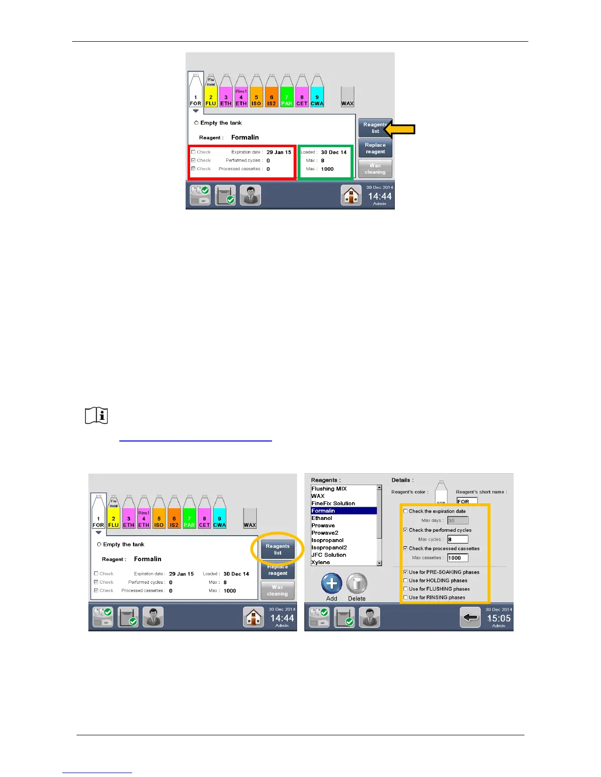 SETTINGS edited into the “Reagent list” (figure above, arrow).See chapter 4.1.1 for further clarifications.