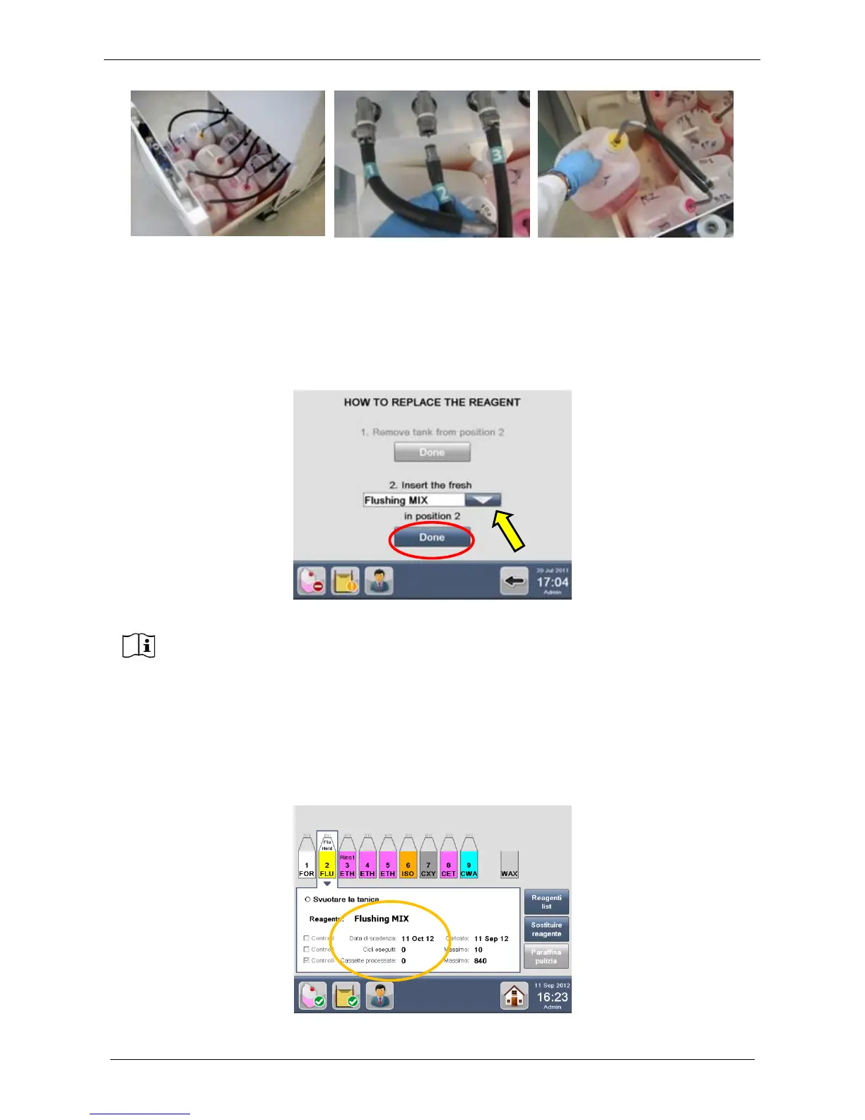 Put the tank containing fresh reagent into the position indicated by the software (number 2 in this case).