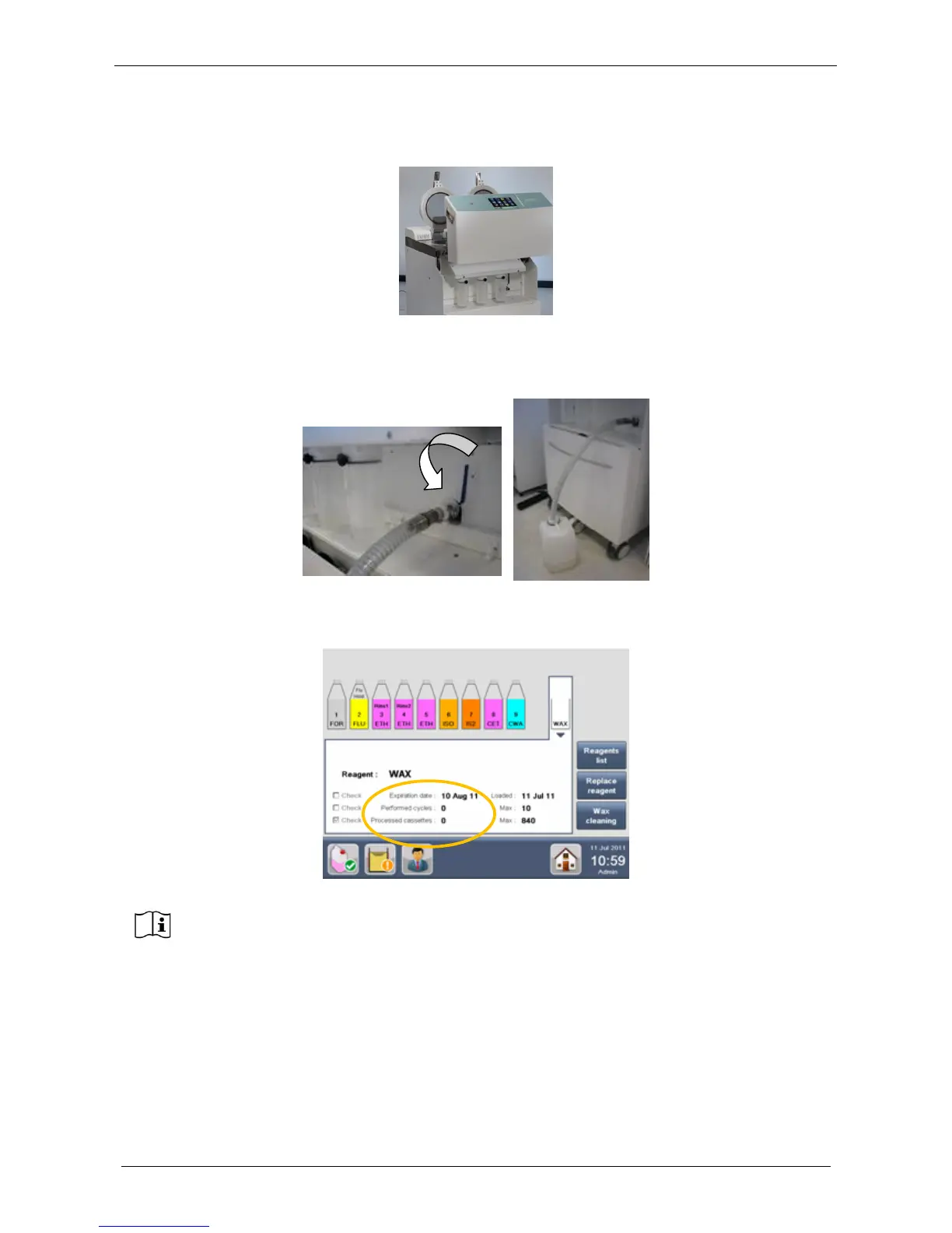 3. Wait until the new solid WAX loaded has melted (100 minutes). If molten WAX is loaded, the WAX