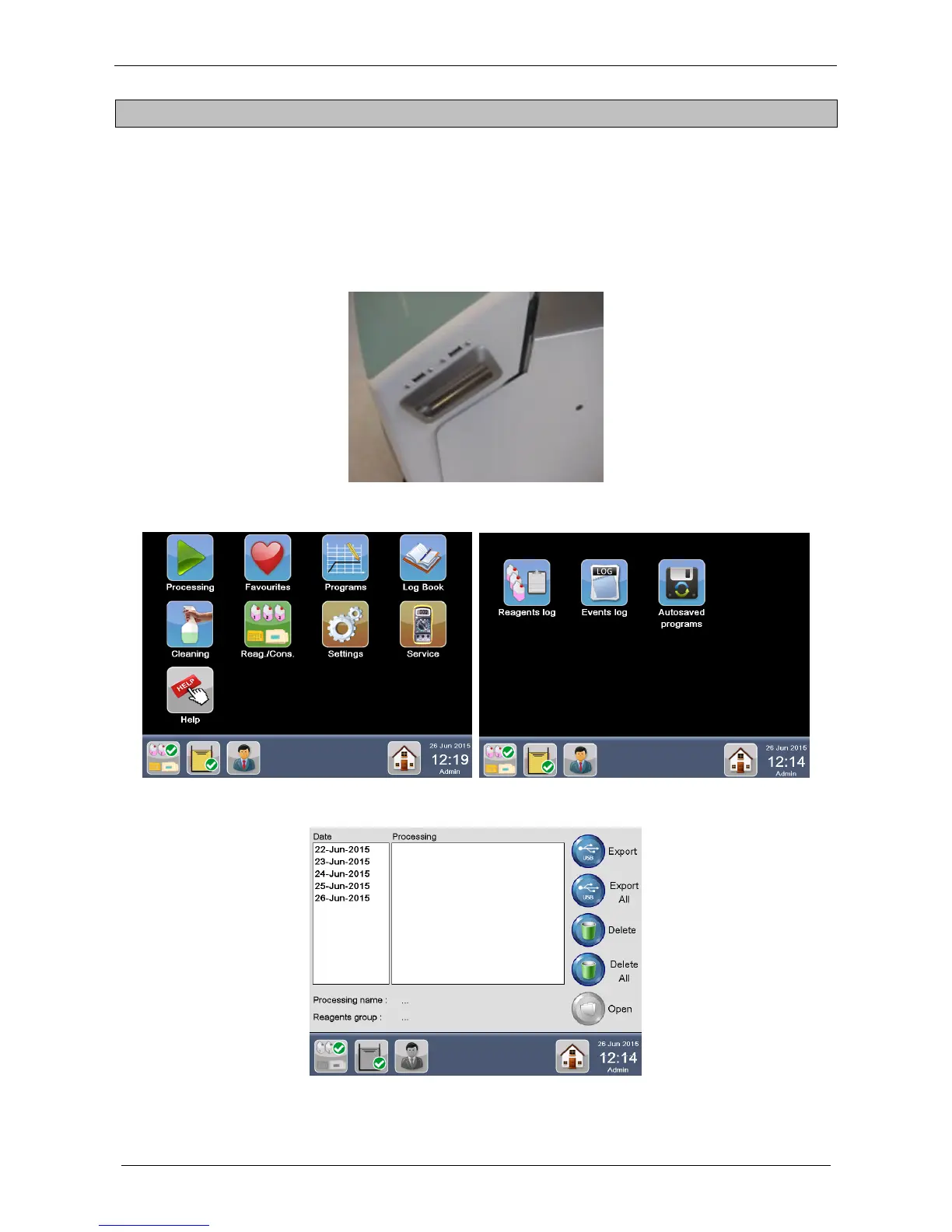 Select “Log Book” button from the MAIN FUNCTIONS screen and then select “Autosaved programs”.