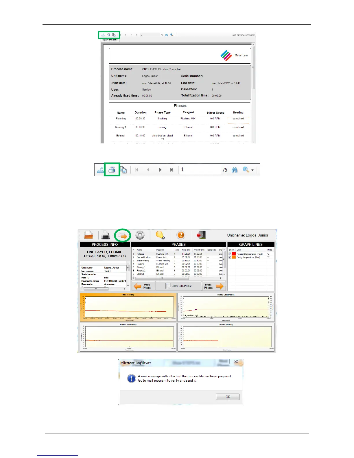 Click on the icon “Send process to customer support” (green circle) to forward an automatic