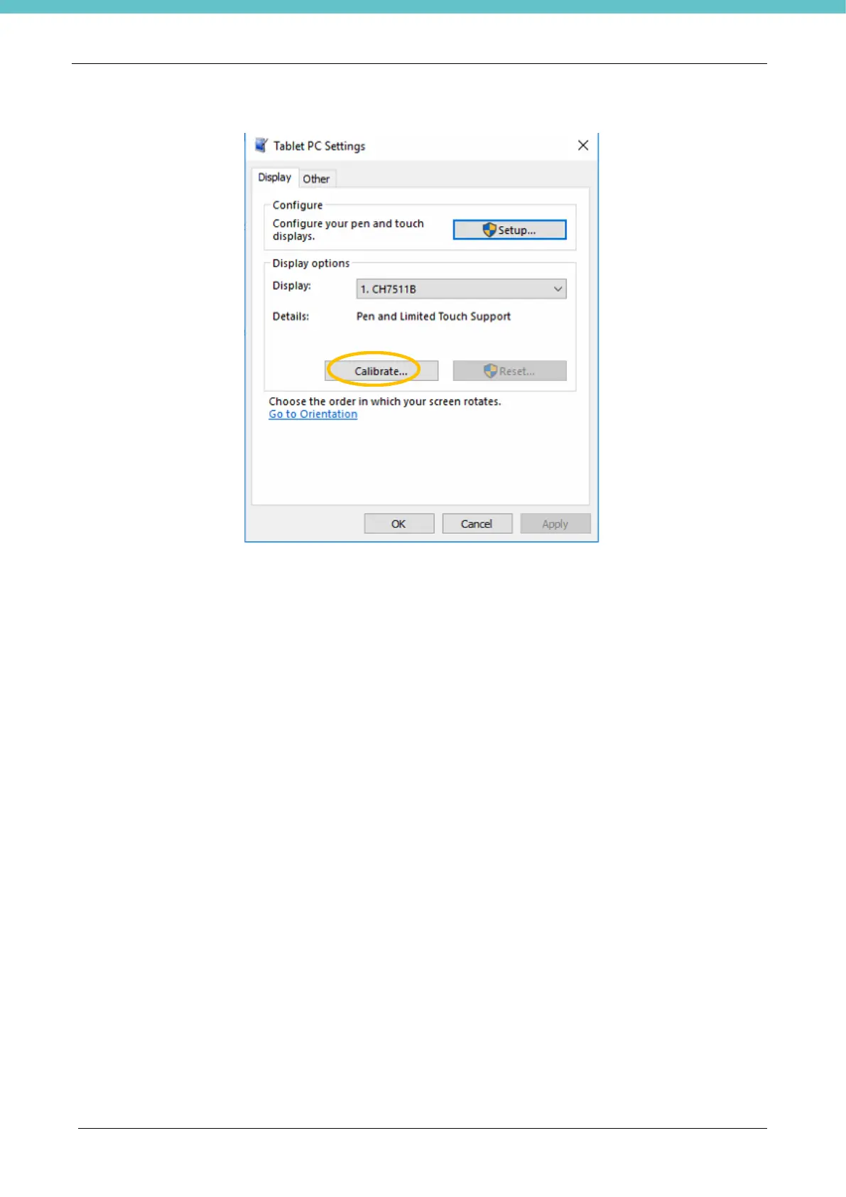 - If an incorrect calibration was saved, click RESET with the mouse to restore the default calibration
