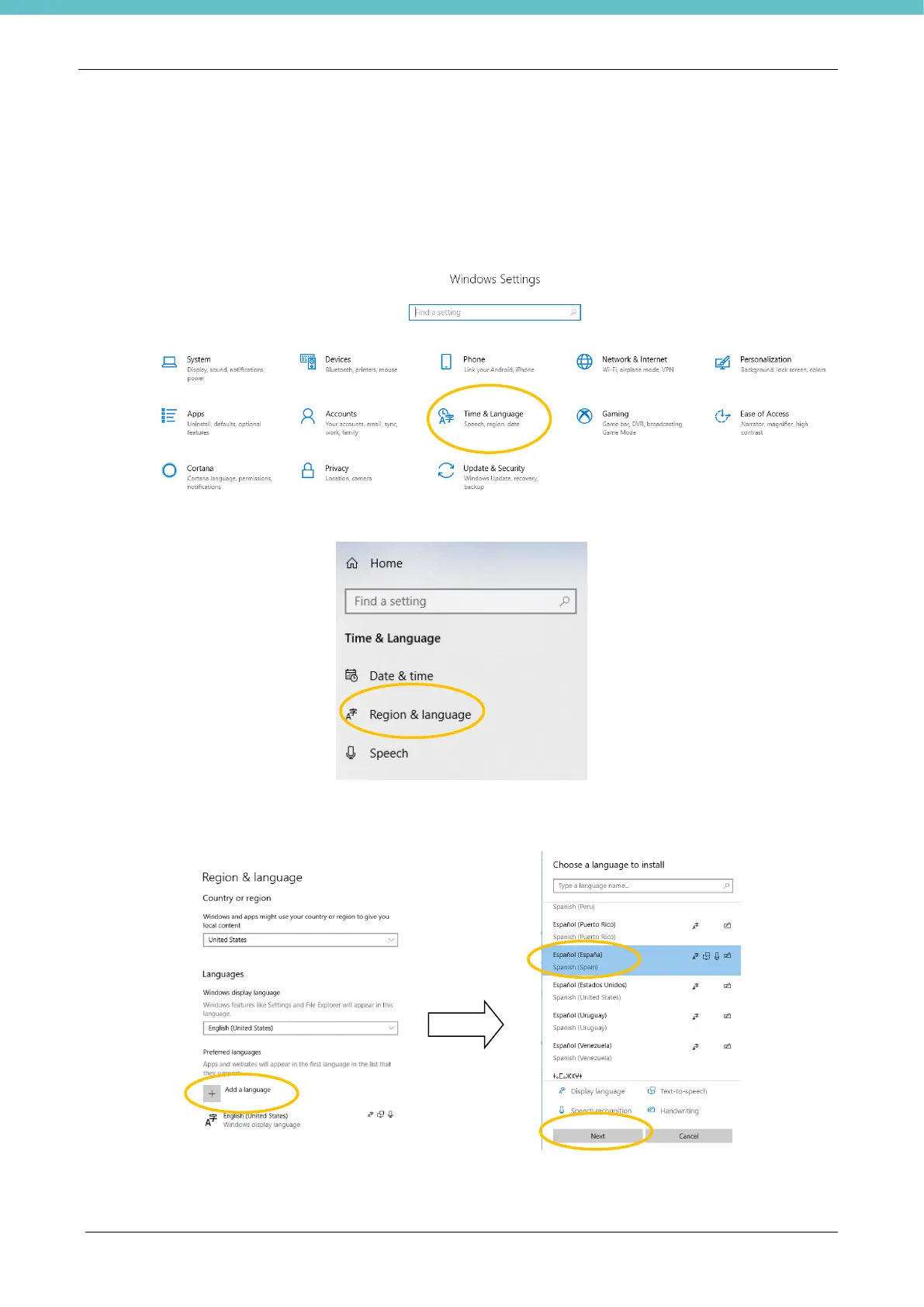 - click “Add a language”, choose the desired language from the displayed menu and click “Next” and “Install”