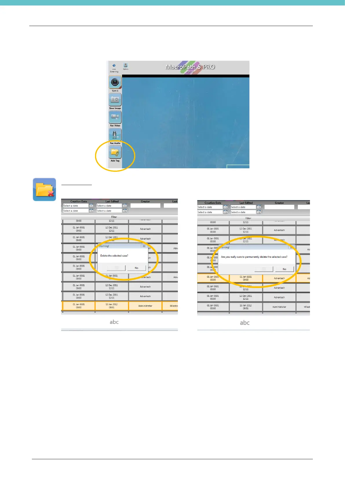 Delete case: press this icon to delete a case. Double confirmation is requested to prevent errors.