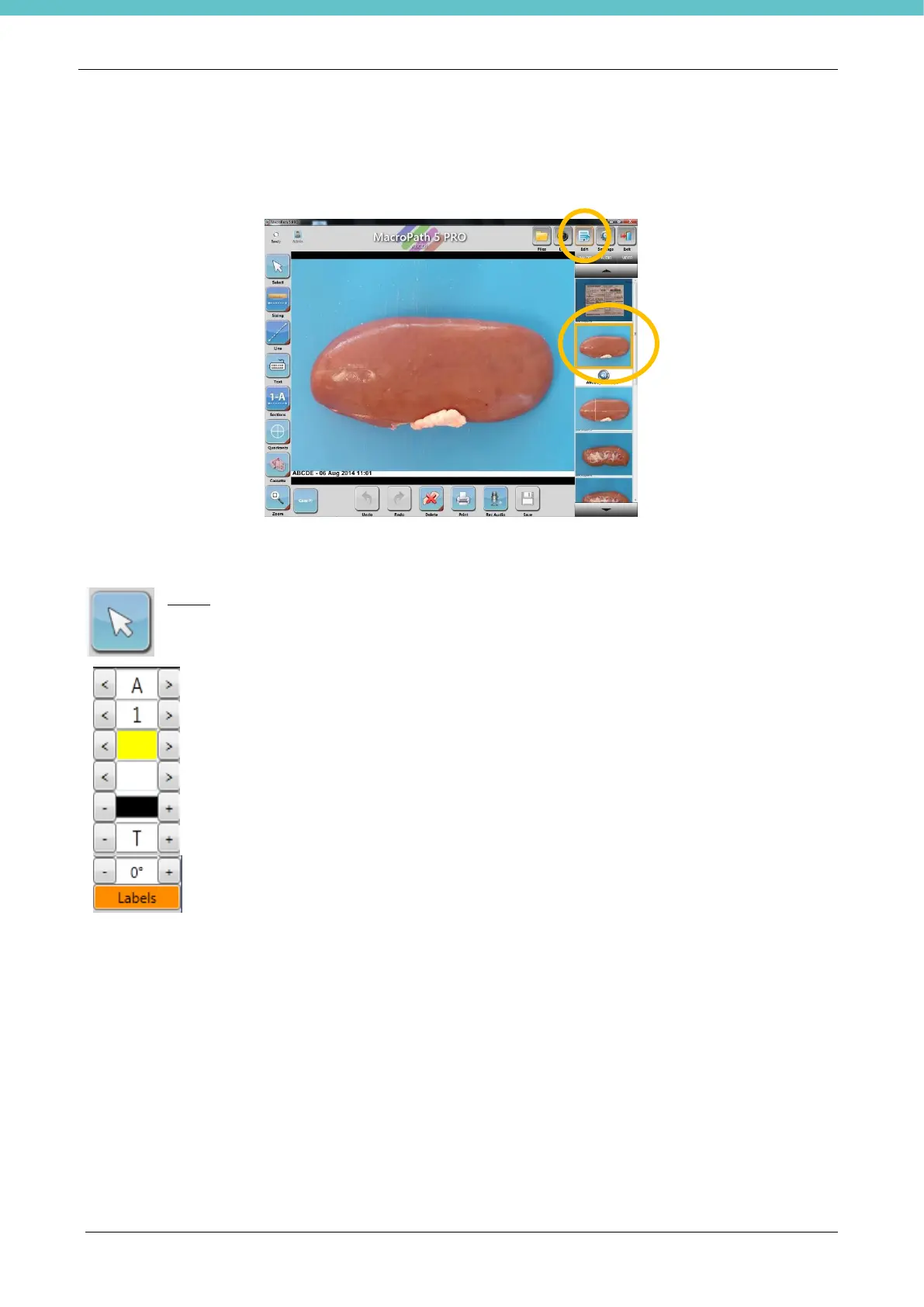In annotation mode it is possible to add text, measurements, graphic elements and sections to the image,