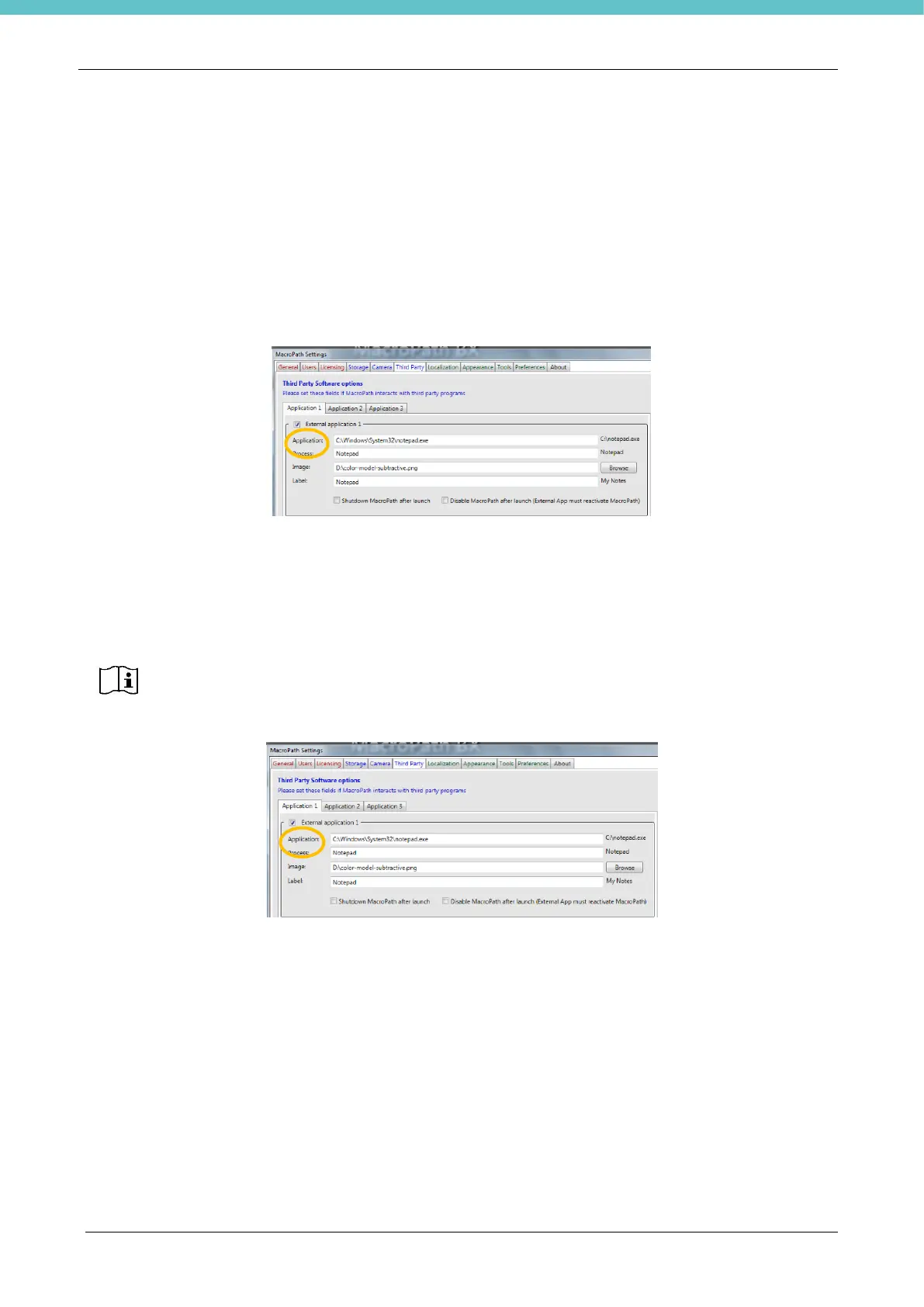 It is possible to create shortcut buttons to launch external software (up to 3 different external applications,