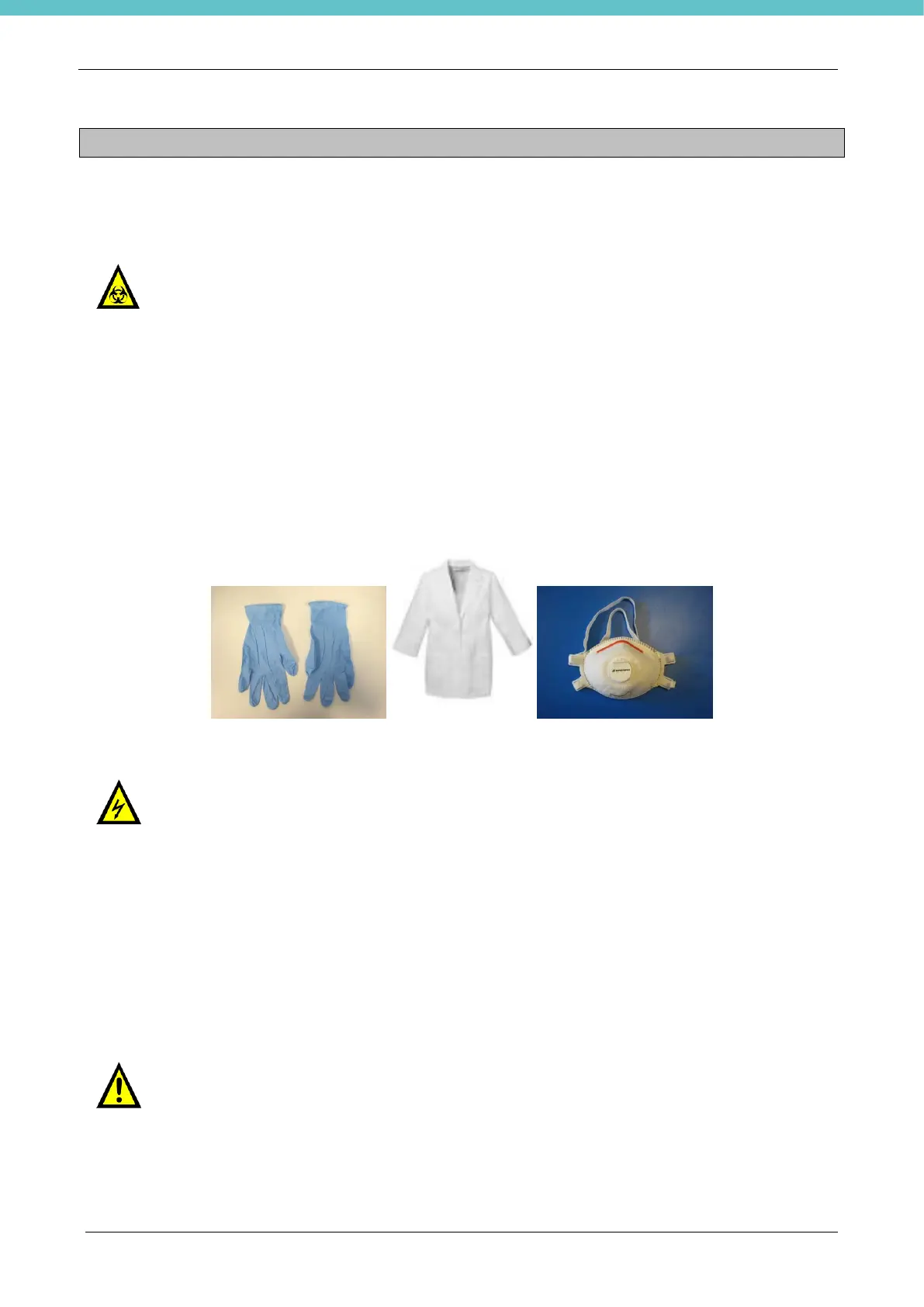 • HI-RISK type single-use protection gloves (100% latex or equivalent material). Personal protection