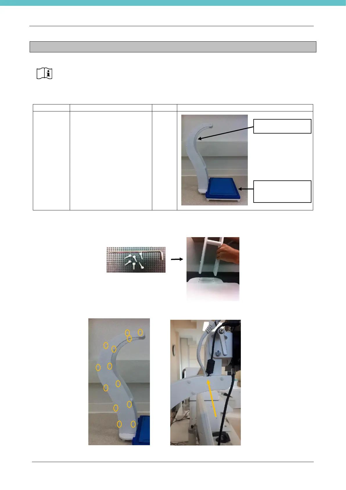 For installation, connect the macrostand base, as shown in the figure below. Use the six screws and the