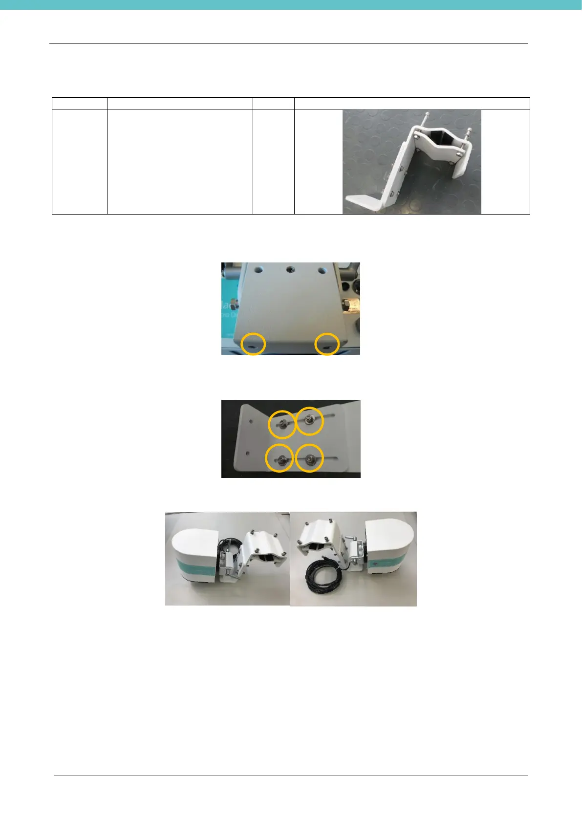 Secure the clamping bracket to the camera using the bottom holes with the 2 M6x16 screws (with washers)
