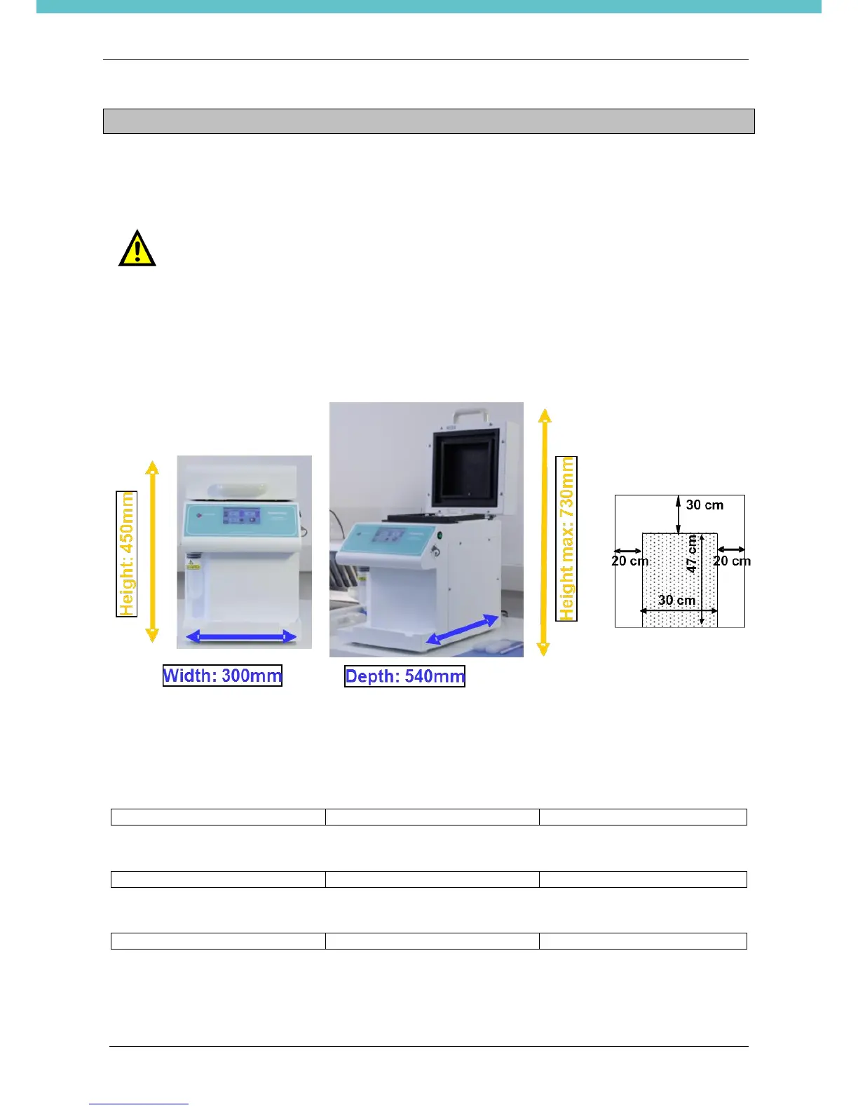 at least a distance of 20cm (7.9in) for each side and of 30cm (11.8in) behind.