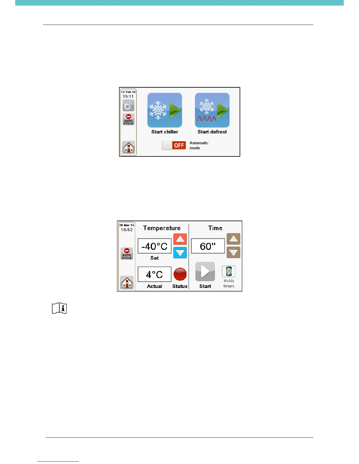 IN MANUAL MODE: To set up freezing temperature and duration, enter in the Chiller page, through the