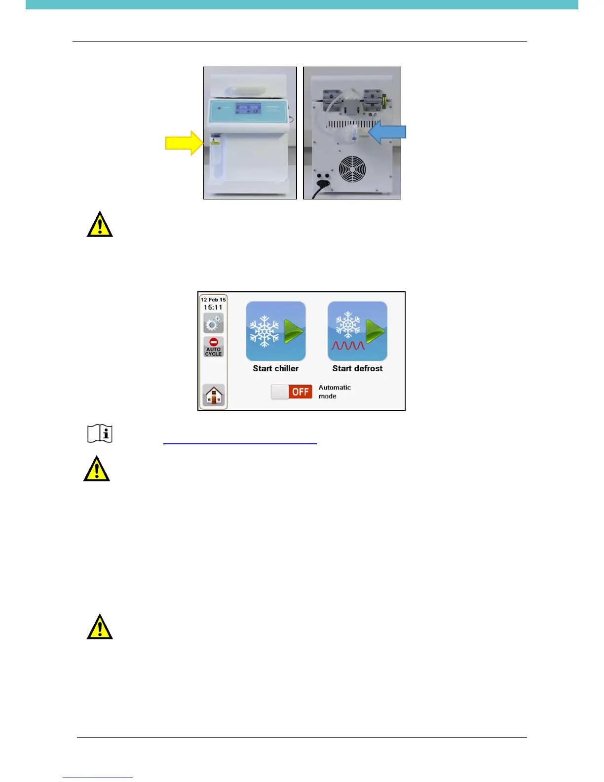 When in manual mode, press the “Start defrost” icon on main screen to start defrost procedure. At the end