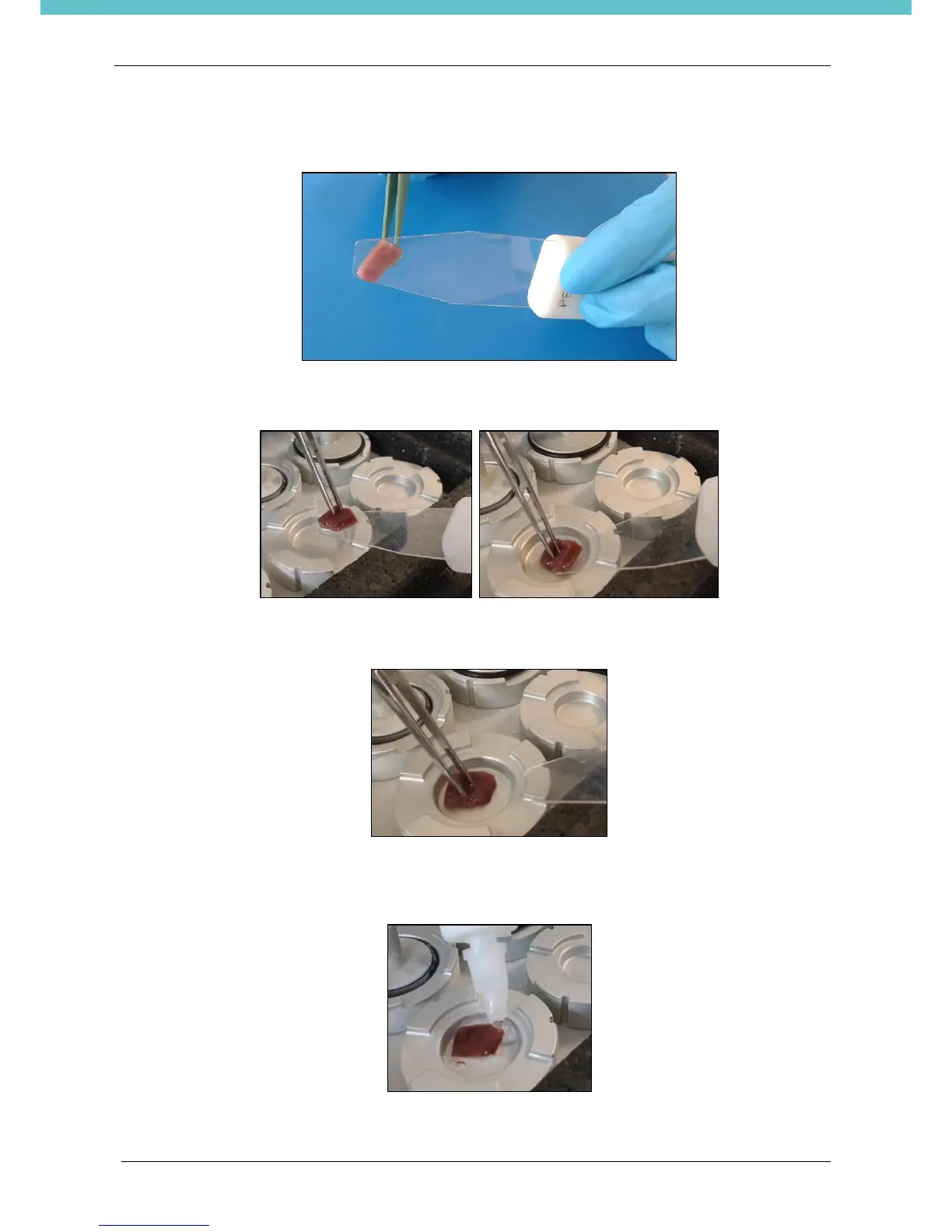 5) Let sample protrude from the end of the slide and touch the leading edge of the tissue to the mould