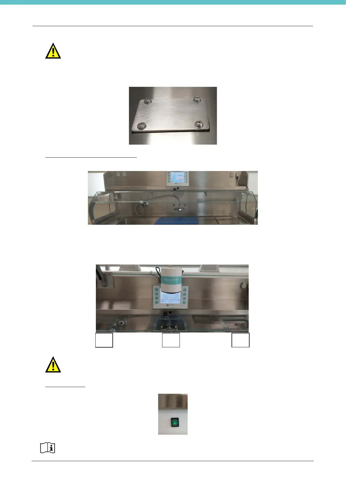 openings on the safety shield. The openings are closed by a polycarbonate panel that must be removed in