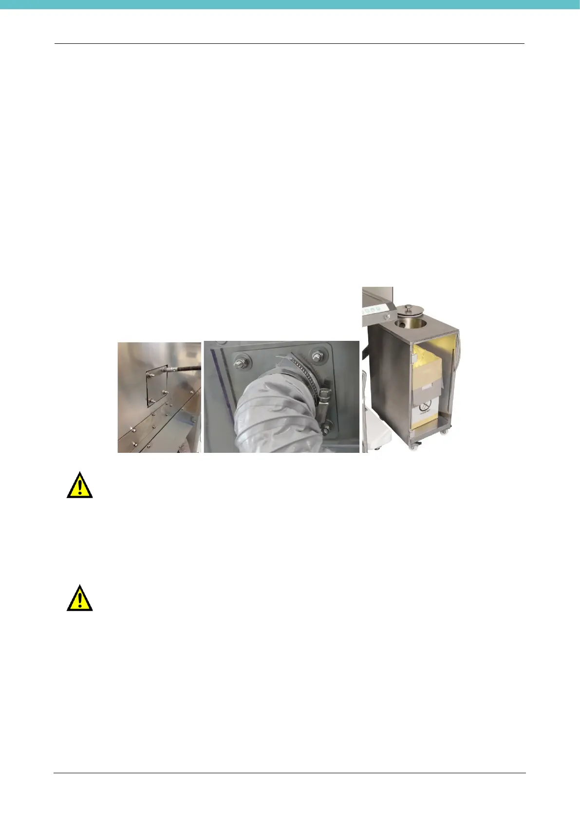Connect the other end of the exhaust tube to the bin and secure it with the supplied strap.