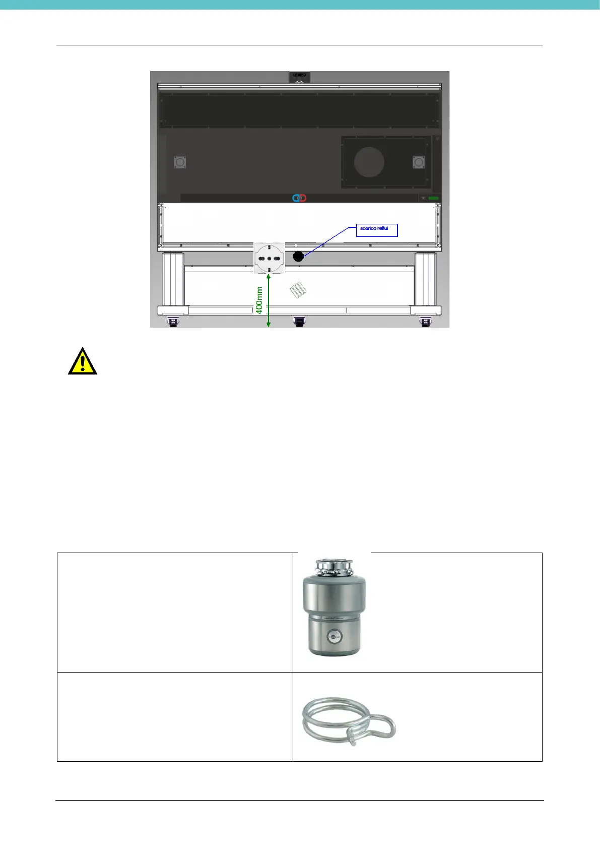 Connect the Waste disposal unit to a 16 A power socket with earth contact.