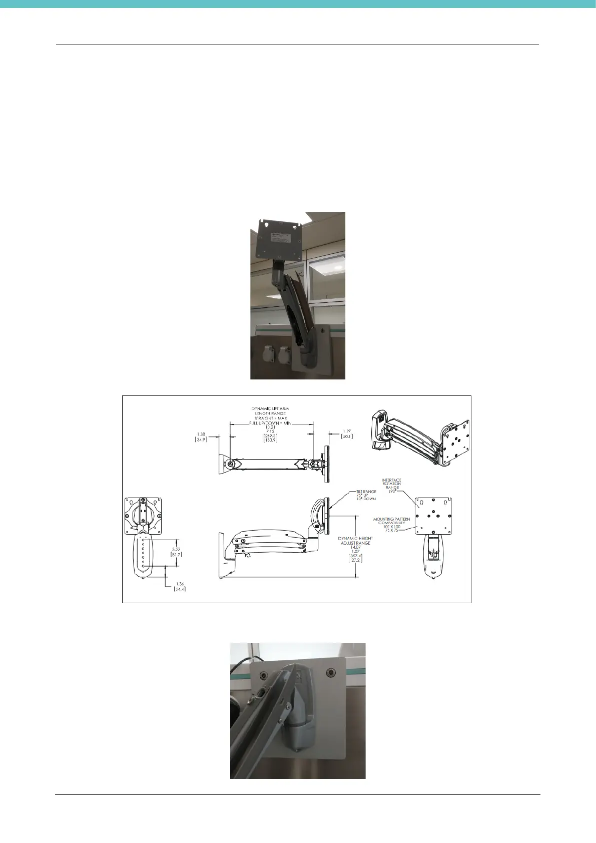 A monitor weighing up to 9Kg can be connected with the VESA 75/100 bracket along the entire crosspiece bar