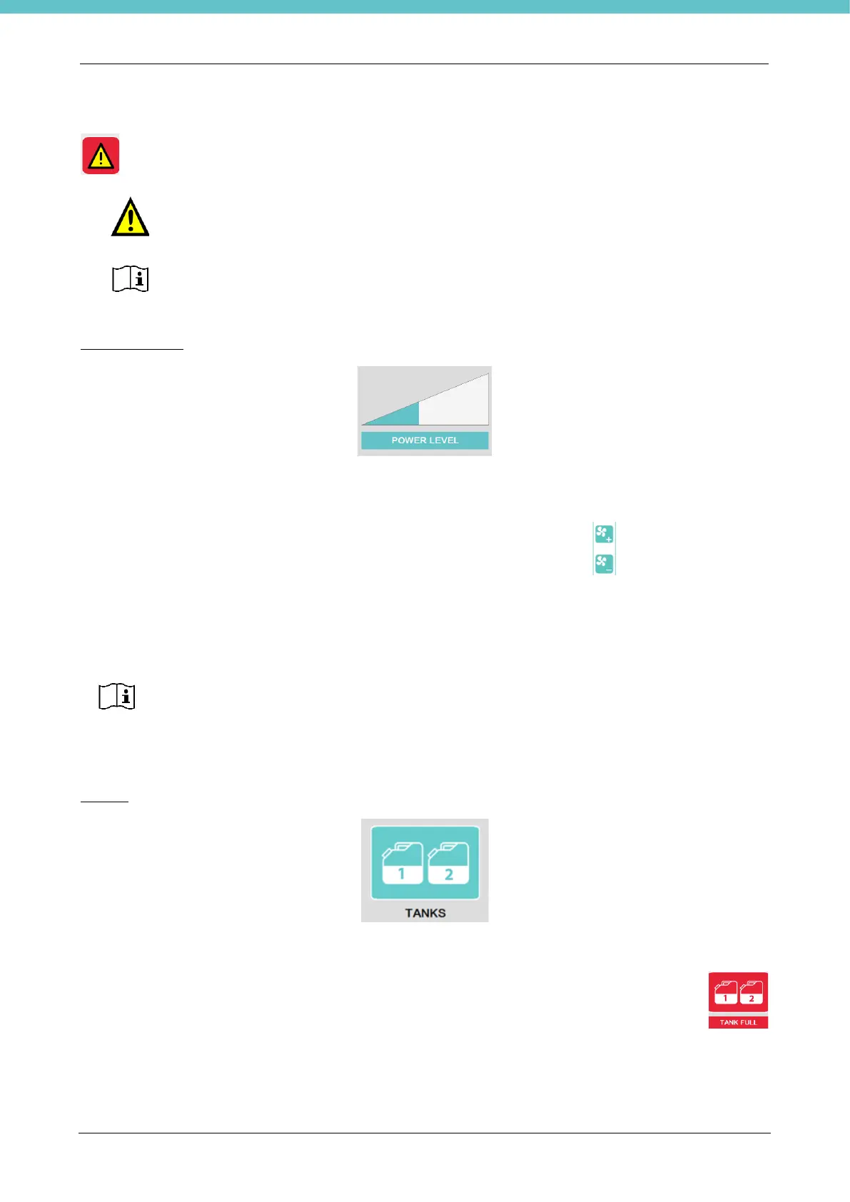 When one or both tanks are full, the following pop-up with beeper appears and the button turns red