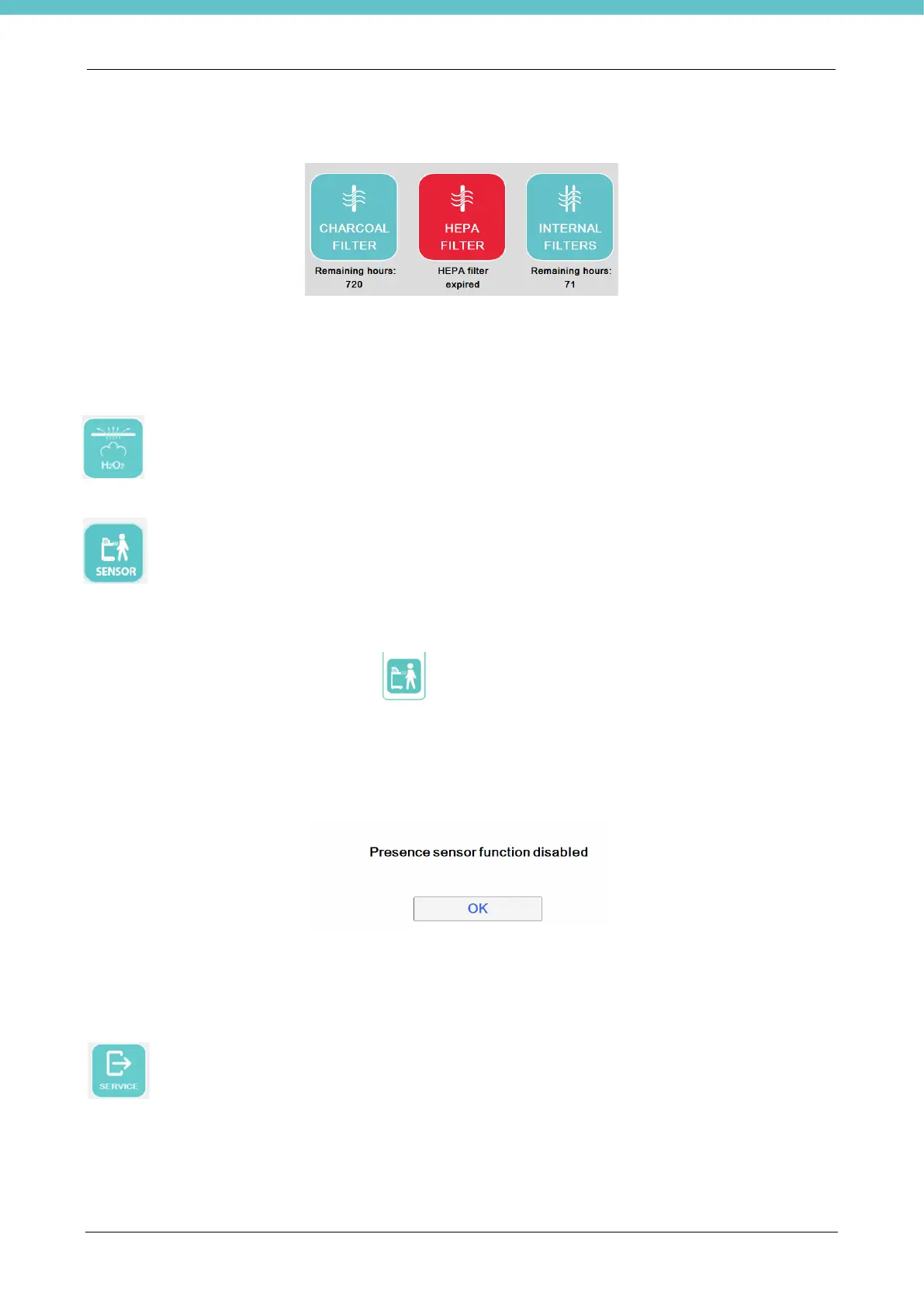 date and reset the counters after having replaced them. If there is no filter, the Filters button will be grey.