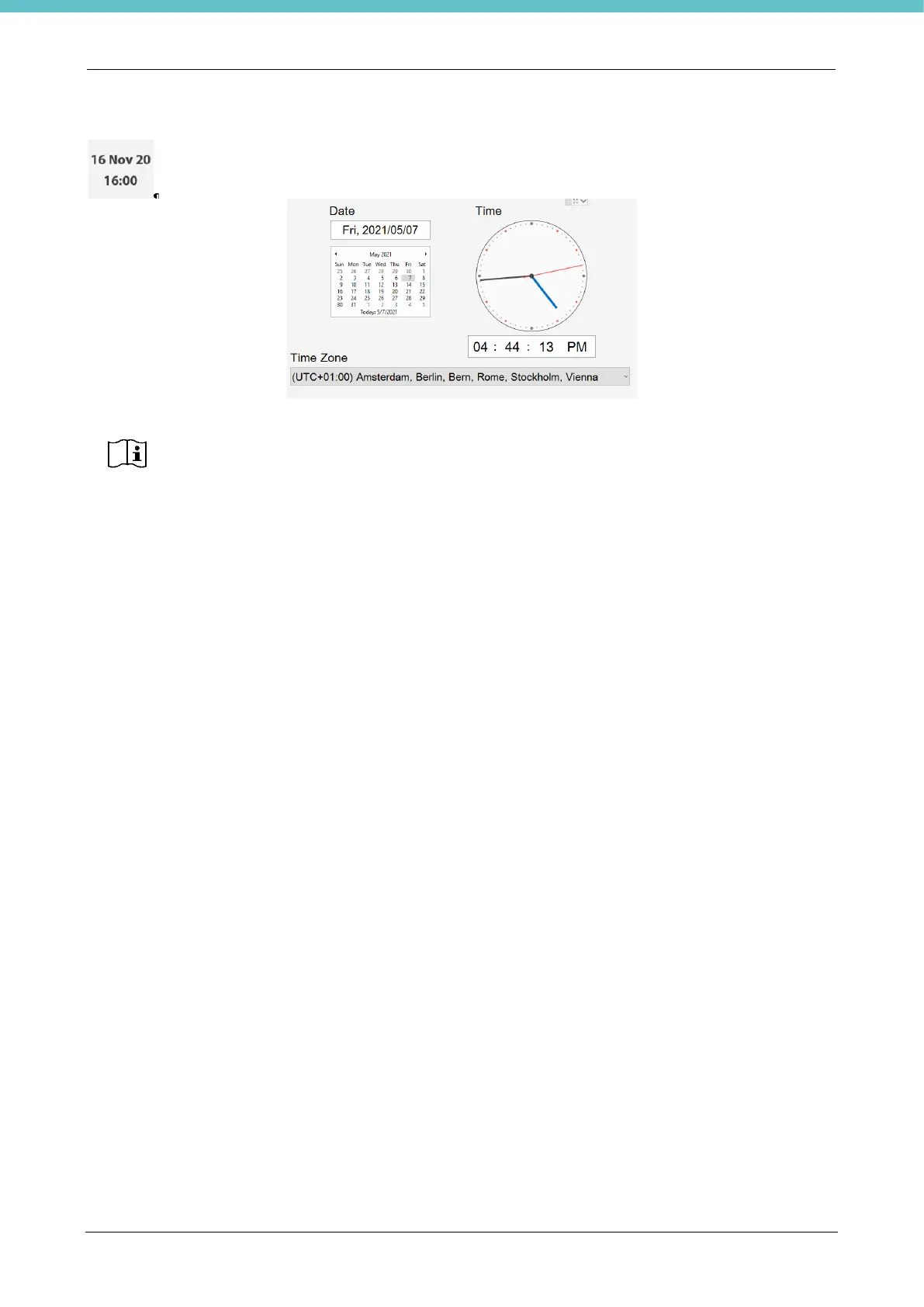 Current Date and Time (the figure shows an example). Pressing this area opens a dedicated