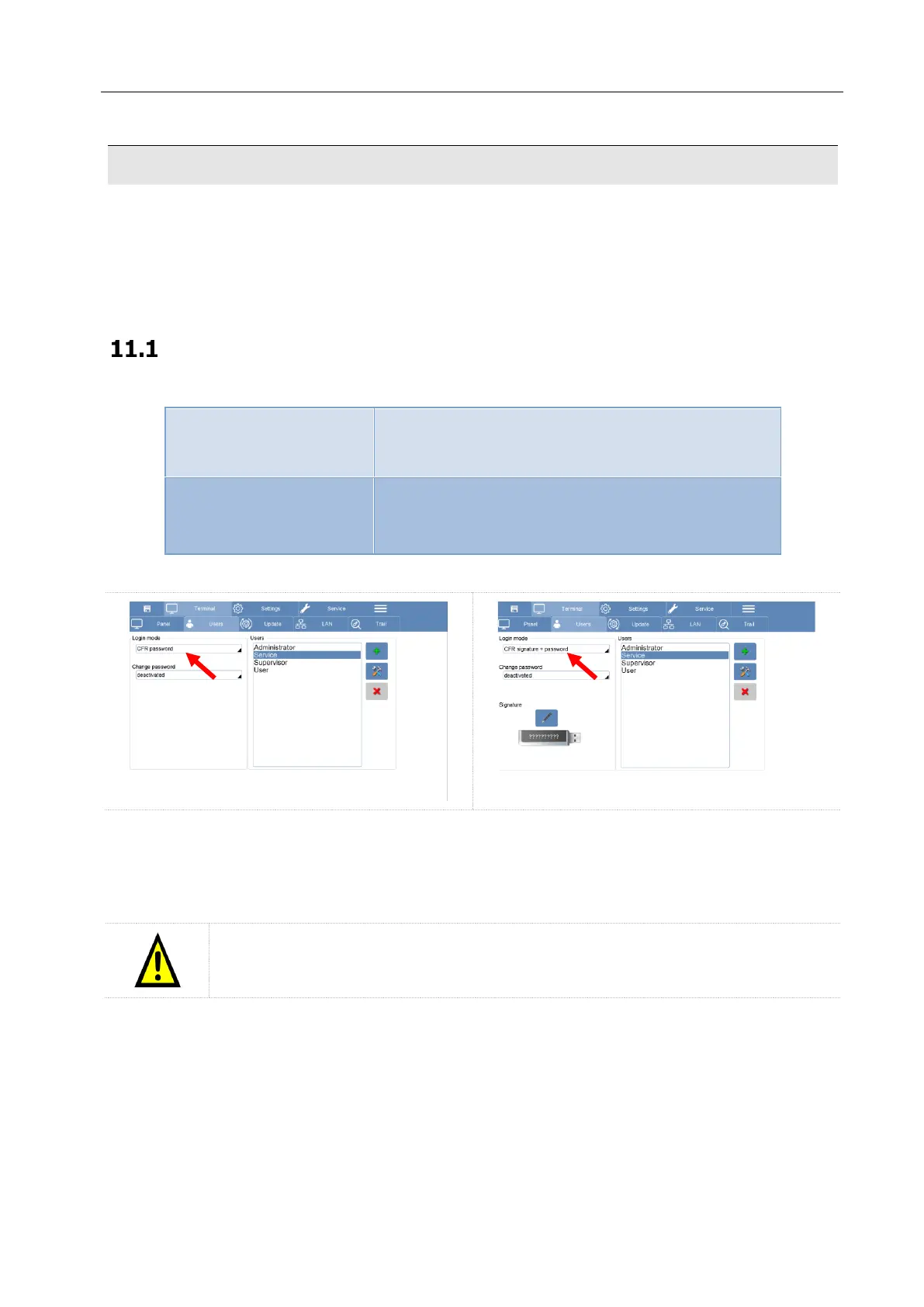The Login mode in accordance with the 21CFR-11, can be done in two different ways