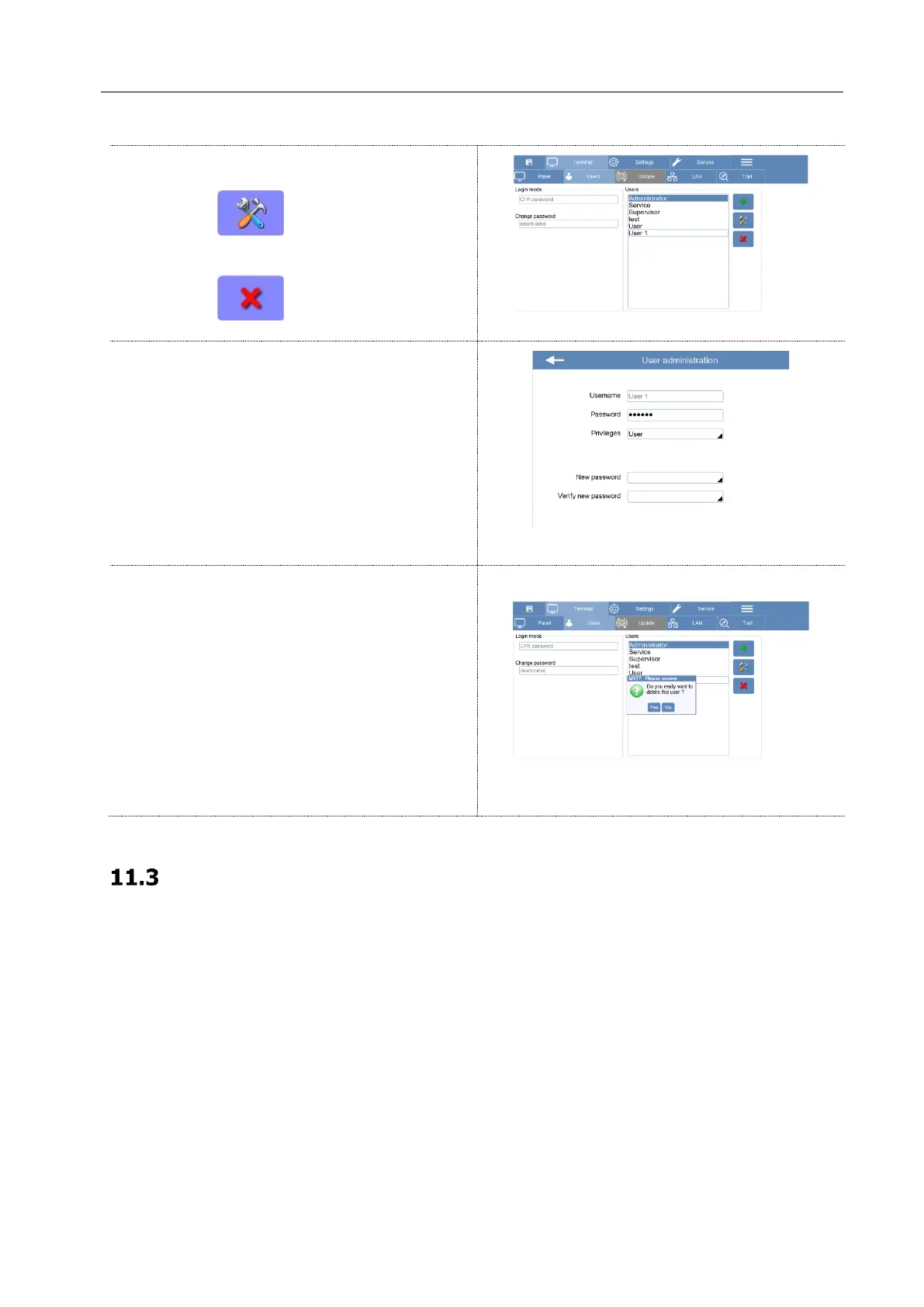 2. Press to delete existing User