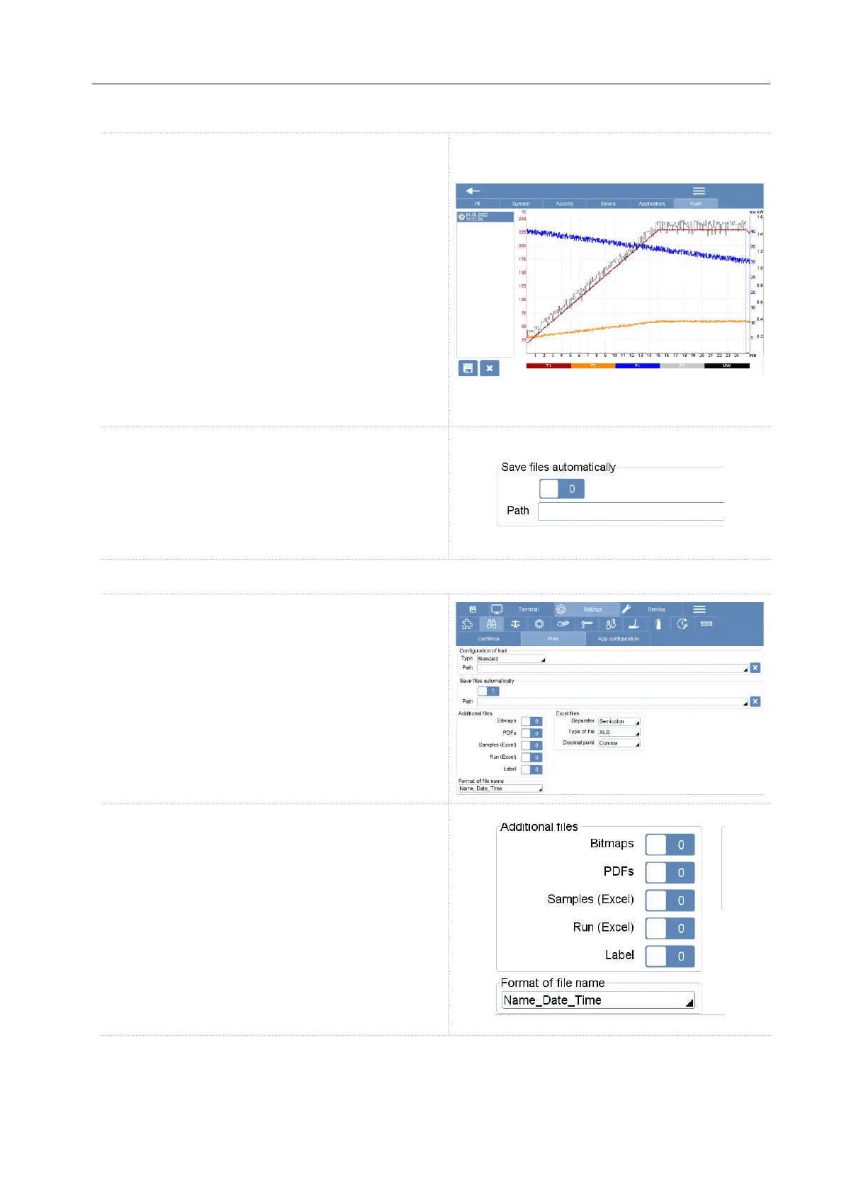 (pdf, csv, bitmap) on USB or Server at the end of