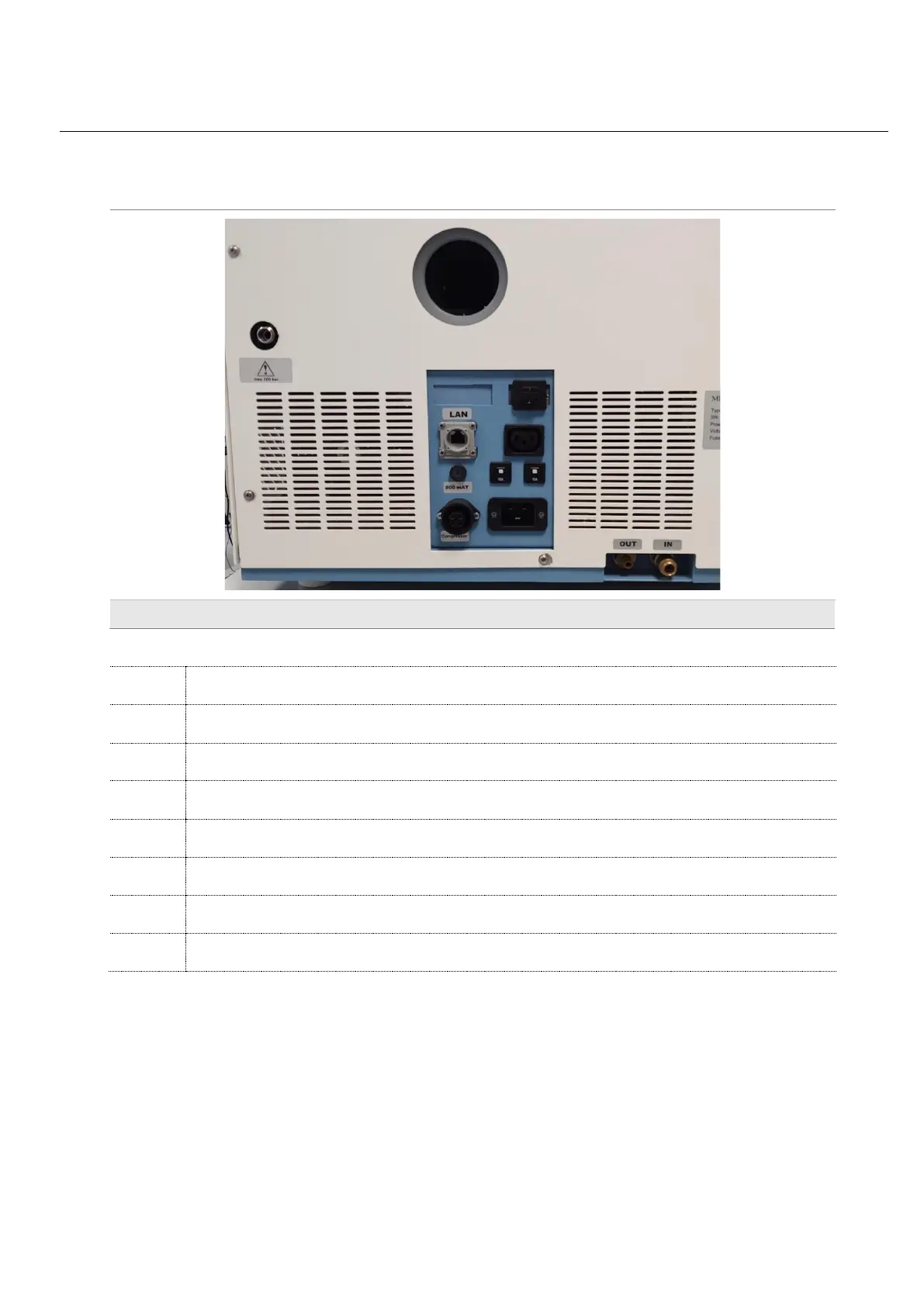 Load gas connection (gas bottle or compressor)