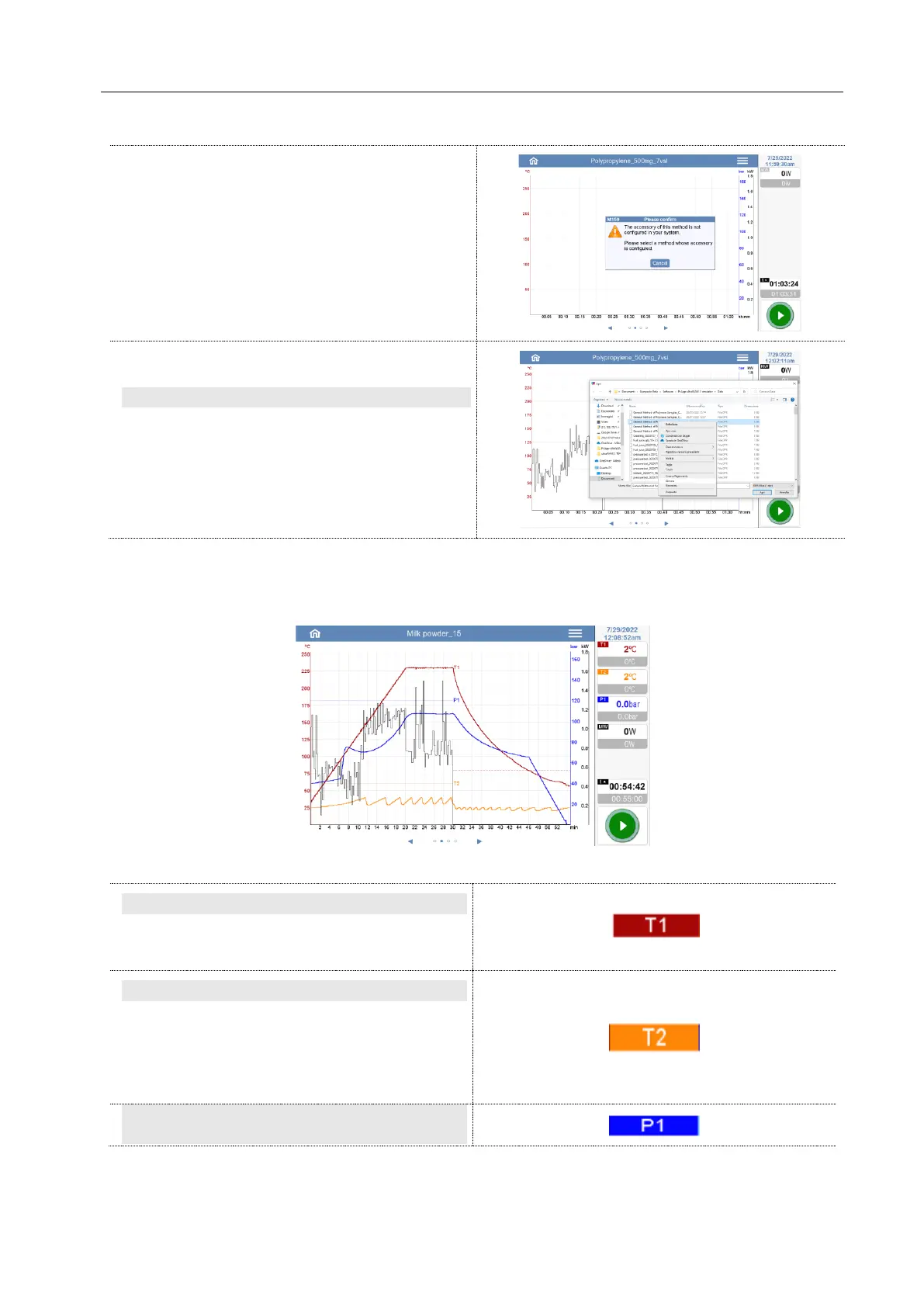 The individual graphs can be displayed or hidden from the screen by pressing the corresponding button.