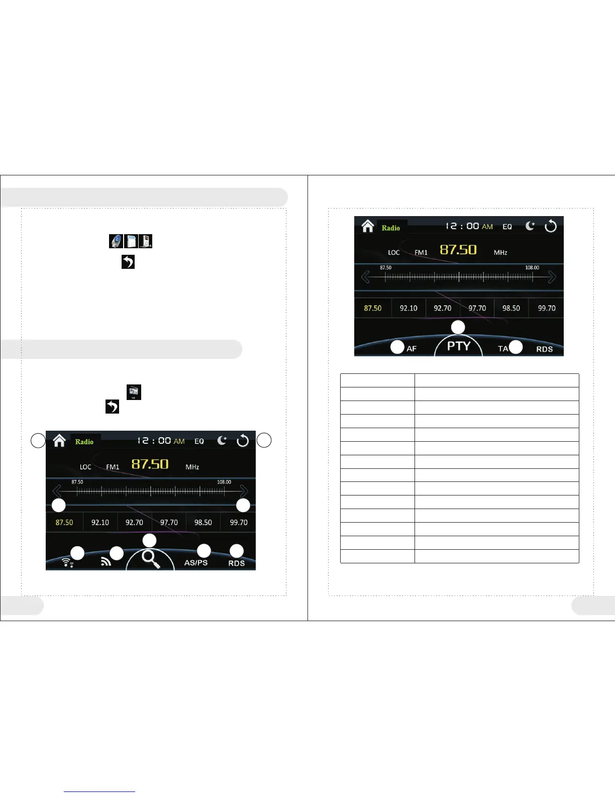 ● Under main menu, touch “ ” icon to enter Radio function.