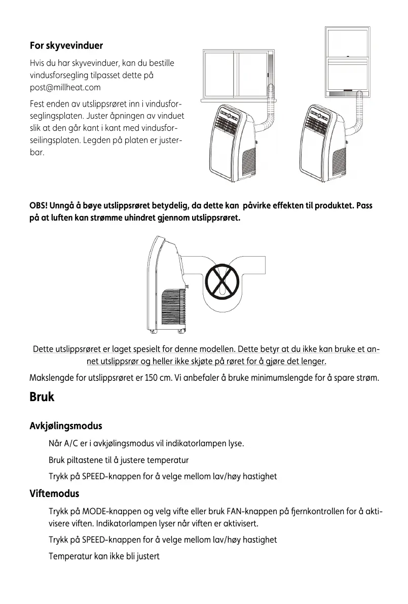 MILL JC5000AIR - Bruk; Avkjølingsmodus; Viftemodus