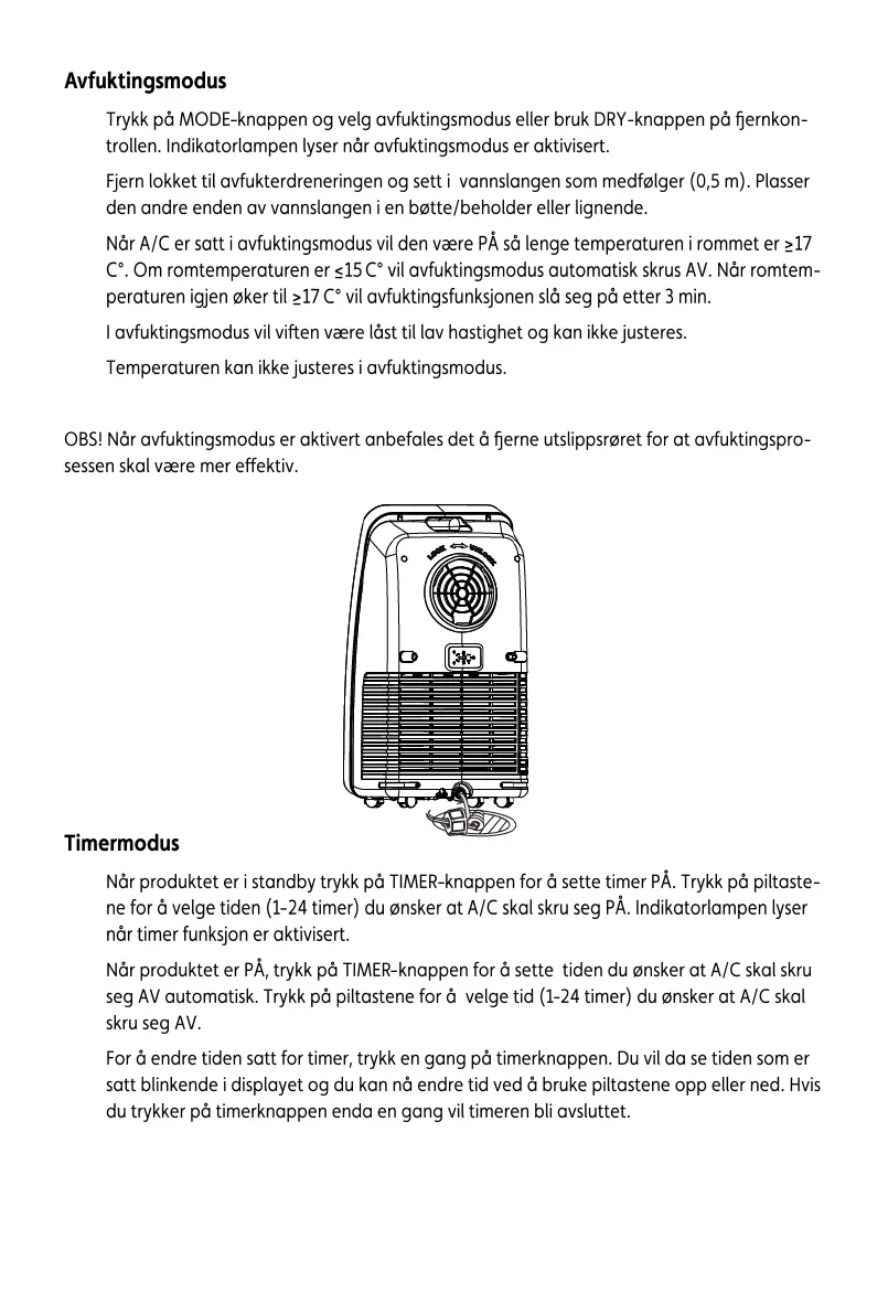 MILL JC5000AIR - Avfuktingsmodus; Timermodus